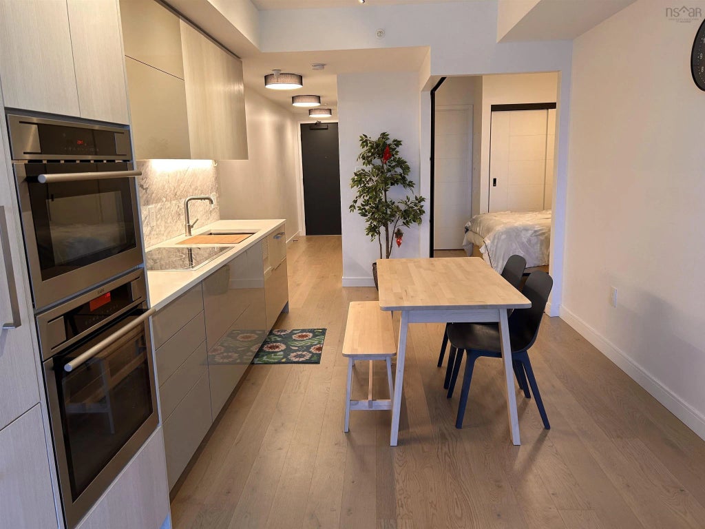 Indulge in the epitome of luxury living with this exquisite 1-bedroom, 1-bathroom condo located in one of downtown Halifax's newest and most prestigious buildings, The Roy. Boasting unparalleled amenities and elegant finishes, this condo offers a lifestyle of comfort, convenience, and sophistication. The open concept layout features stunning engineered hardwood flooring and sleek porcelain tile, creating a seamless flow throughout the space. Step outside onto your private balcony and savor the sights and sounds of downtown living. From the 24-hour concierge service ensuring security and convenience to the deeded parking space with a state-of-the-art car elevator, every aspect of luxury living has been meticulously curated. Indulge in the ultimate relaxation at the indoor pool, sauna, and steam room, or maintain your fitness routine in the fully equipped gym and yoga/meditation studio. Host gatherings in the multi-purpose amenity rooms, complete with a kitchen and wet bar, or enjoy movie nights in the theatre-style screening room. Additional amenities include a private boardroom, landscaped terrace, pet spa grooming station, and a luxurious hotel-style guest suite for visitors. With water included, as well as all these incredible amenities, this condo represents the pinnacle of urban luxury living. Schedule a showing today and elevate your lifestyle to new heights.