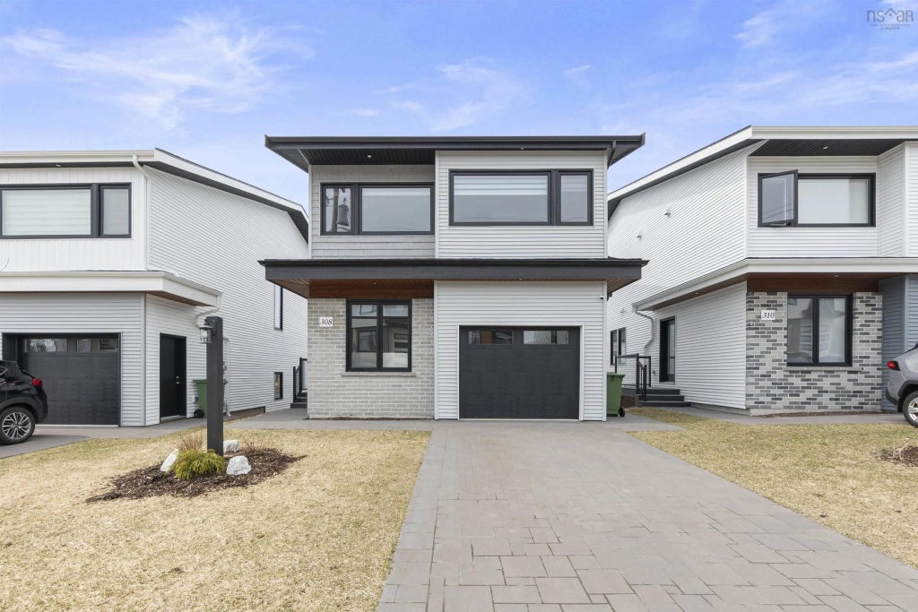 This residence at Brunello Golf Estates presents an extraordinary opportunity to reside in a picturesque community, just minutes away from Bayer's Lake and conveniently accessible to downtown Halifax. The smart architectural design, featuring a welcoming side entrance, introduces a charming foyer and a private home office, perfectly suited for remote work or hosting meetings. Stepping into the spacious great room with lofty 10' ceilings, one is immediately captivated by the abundant natural light streaming through the expansive windows. The kitchen, adorned with quartz countertops and a sizable island, serves as a central gathering spot for loved ones, complemented by a generous pantry for ample storage. Completing the main level are a discreet powder room and direct access to the garage, all finished with elegant tile and hardwood flooring. Upstairs, the lavish Primary bedroom, graced with hardwood floors and a walk-in closet, offers a serene sanctuary, accompanied by a spa-like ensuite boasting a luxurious soaker tub, double raised underlit vanity, and a separate shower. Additionally, two bright and spacious bedrooms, another full bath, and a conveniently located laundry room contribute to the functional layout of the upper level. The walkout basement, featuring a cozy rec room and kitchenette, a fourth bedroom, and a third full bath, separate laundry units, presents versatile living options, perfect for accommodating guests. With the added comfort of heat pump, residents can enjoy year-round comfort and energy efficiency. Embrace an active lifestyle within The Links at Brunello community, offering amenities such as golfing, walking trails, cross-country skiing, river access, and clubhouse events. In summary, this property not only offers an exquisite residence but also the opportunity to embrace a vibrant lifestyle within a thriving community setting.