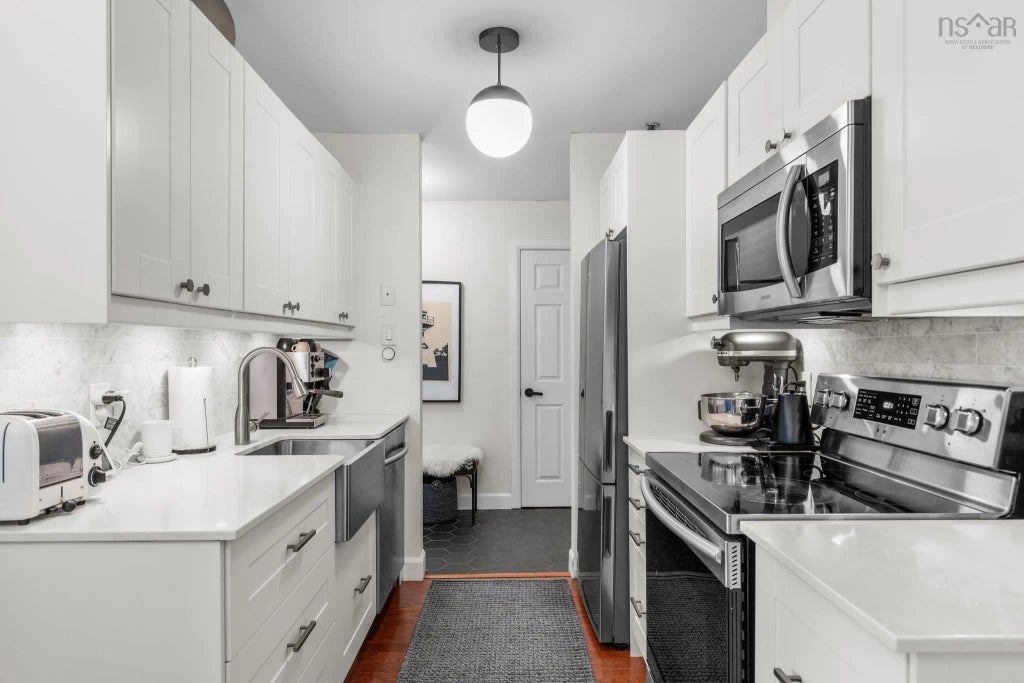 Welcome to Brookside Condominiums! Nestled in the heart of Bedford, this secluded property offers a peaceful setting surrounded by lush, mature trees. Conveniently located within walking distance to various amenities, including shopping centers, grocery stores, NSLC, public transportation, picturesque trails, and Mill Cove, where they are looking to host the new ferry terminal connecting Bedford to Halifax. Upon arrival, you'll appreciate the abundance of parking spaces available both in the front and back of the building, ensuring ample parking for residents and guests. Additionally, there's a designated spot for washing your vehicle, enhancing convenience. Step inside your newly renovated unit, where you're greeted with a tiled entryway. To your right, a pantry/extra storage area. To the left of the entryway awaits a stunning, fully renovated kitchen, seamlessly flowing into the dining room and spacious living area. The north-facing windows in the living room, bedroom, and balcony offer views of the brook flowing down from Papermill Lake Beach Park, creating the perfect atmosphere for enjoying your morning coffee or hosting barbecues with friends and family. Please note: On the lower level of the building, you also have a separate storage area for your seasonal belongings. This meticulously maintained unit and building presents an ideal opportunity to embrace the lifestyle offered by Brookside Condominiums. Make this your new Bedford home!