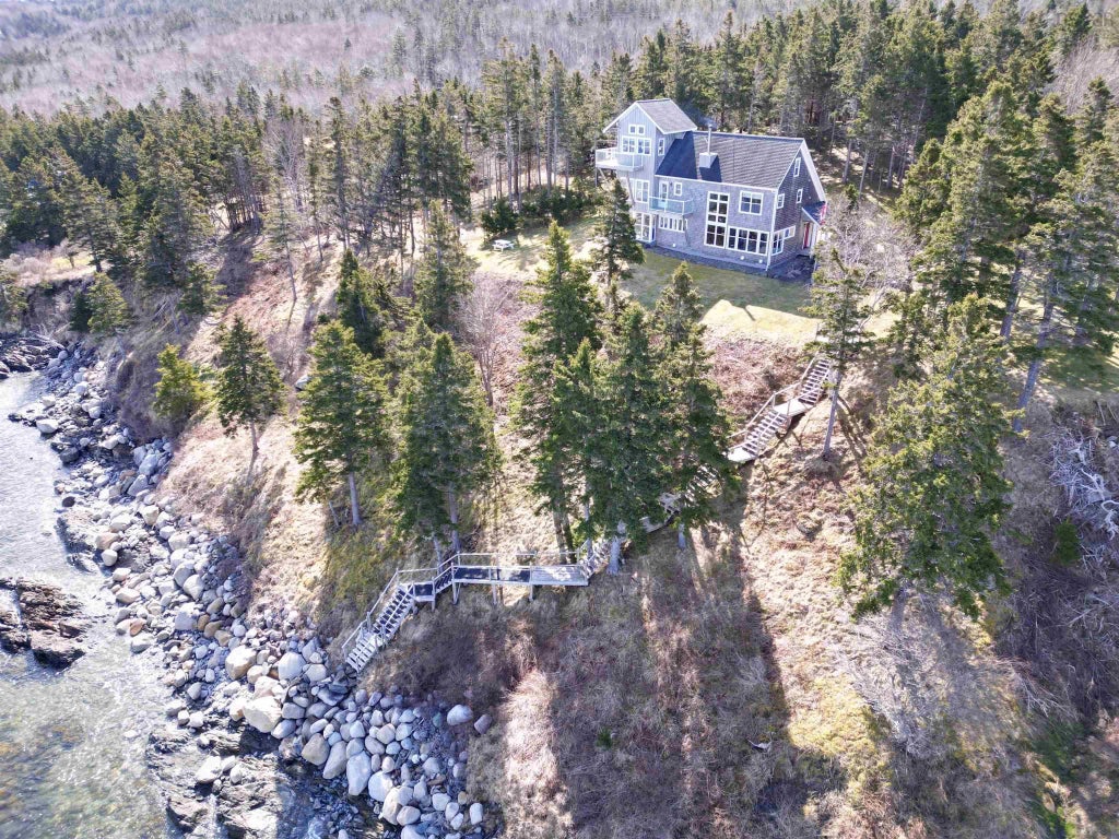 ONE OF A KIND! 6.89 acres of prime oceanfront (350 feet)on the Chedabucto Bay with a superbly designed ,built with very high quality materials,2200 sqft.home that is in excellent state of repair. The home comes fully furnished with high quality furniture. On the opposite side of the highway are another 265 acres of untouched woodland that features approximately 1660 feet of lake front on Big Lake. A very tasteful, 170 sqft. cabin by the lake shore complete with a wood stove and an outhouse create a perfect retreat in another world. Several brooks are dotting the woodland. Perfect for kayaking,canoeing,fishing hunting or simple relaxation. The oceanfront part of the property is extremely well taken care off. The woods are cleared of underbrush, garden areas, apple trees ,wild berries,a brook and several outbuildings (all in excellent shape)are completing the picture. In the Bay you can see whales, dolphins ,eagles, seals, gannets and other wildlife. Nature observation at its finest. Some of the many features of the house are all stainless appliances, soapstone counters, walk in closets/ dressing rooms ,two level bedroom with ensuite bath and dressing room ,12’x12’ screen porch ,a full gym in the lower level, balcony of the master bedroom, marvellous architecture with the most gorgeous views of the ocean and the land. The office in the “Eagles Nest” ,also a bedroom that features a balcony ,is something out of this world!