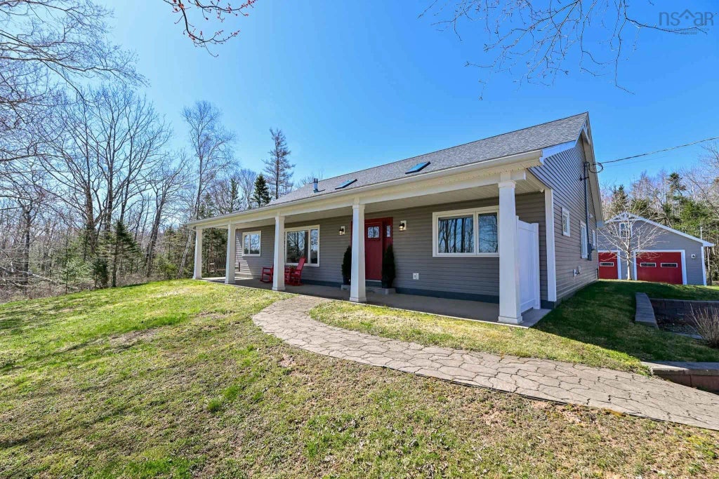 Introducing a striking one-story home perched on the hilltop, overlooking Lewis Lake! Embrace the great outdoors right from your doorstep with many activities such as ATV rides, hiking, biking, exploring different trails. People swim, fish and go hunting nearby. Awaken to birds singing and wildlife passing through. Excellent location 15 mins to Halifax, 10 mins to shopping in Head of St Margaret’s Bay, 35 mins to International Airport. Enhancing the properties allure is the distinguished 32x28 double garage with 28x12 loft. It is sure to captivate. Impressively, there is an 18x12 heated shed that would make a great workspace. Immerse yourself in a seamless indoor outdoor sound system and listen to your favorite station all day! Step inside the home to discover a warm embrace of in-floor heating in newly installed ceramic tile, complemented by all new hardwood flooring. You will find an expansive open concept design, adorned with cathedral ceiling, and bathed with rich light from the elegant skylights. Enjoy a large laundry room and wide doorways ensuring comfort and accessibility for all. Kitchen dining area has a pantry, a charming center island, quartz countertops, propane stovetop, solid wood cabinets with dovetail joinery and under cabinet lighting. Glass sliding doors take you to the 31x14 foot deck with a gazebo. Steps to the yard on both sides of the deck! This home makes you feel relaxed when spending time in it. The flex space between the living room and kitchen can be used for large gatherings and there are many convenient electrical outlets. Lighting adjusts to any level and ambiance is elevated with an attractive propane fireplace. The Primary suite is inviting, offering a lake view and an indulgent spa-like bathroom with relaxation written all over it. Enjoy peace of mind with an alarm system and outdoor surveillance. Plus, rest assured knowing the crawl space remains dry and pristine. Properties like this are hard to find. Seize the chance!