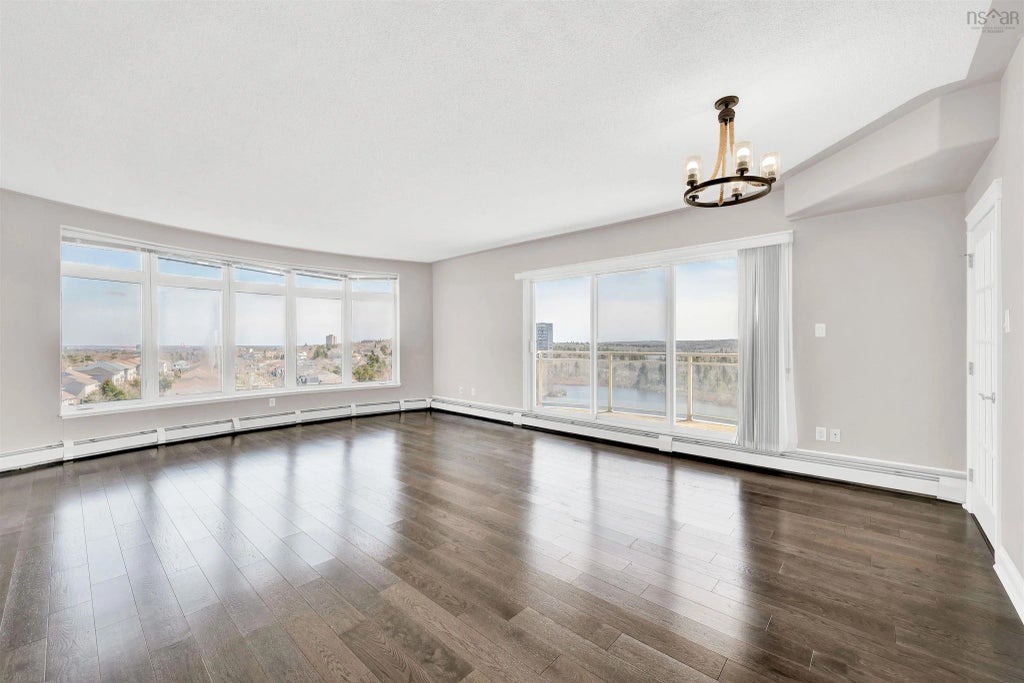 Welcome to The Roxbury Condominiums, where luxury living meets breathtaking views! Perched on the 9th floor, this stunning condo offers unparalleled views of Long Lake Provincial Park & Hail Pond. Step into the sun-filled space that highlights the condo's thoughtfully designed layout. The entryway boasts a spacious coat closet and a convenient laundry room that doubles as additional storage. A large mirror adorns the hallway, creating depth and a quick glance before heading out! The kitchen, with direct views of Hail pond and Long Lake Park, seamlessly leads into the expansive living room through french doors. The living room features wrap-around windows showcasing panoramic views of the city skyline and the tranquil pond. Step out to the balcony, providing the ideal setting for enjoying the company of friends and family while soaking in the picturesque views and greenery while just being moments away from Halifax Shopping Centre, the Armdale rotary, and all your must have amenities. The primary bedroom, strategically positioned to capture plenty of sunlight, features a large walk-in closet and an en-suite bath. The second bedroom on opposite end, features yet another walk-in closet and stunning pond views. The guest bath, steps away, also features a tub. Additional linen closet in the hallway, ensuring storage is never an issue in this condo! The Roxbury offers an array of amenities to enhance your lifestyle. Enjoy access to a Fitness Centre, Saunas, Guest Suites, Lounge, Multi-purpose room with a Library, and indoor resident parking with storage as well as outside guest parking. Experience lakeside living at its finest with The Roxbury. Schedule your viewing today and seize the opportunity to indulge in luxury and convenience!