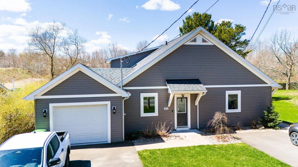 This modern, stylish, semi-detached, 2 bedroom, and 2 bath home is within walking distance to the Town of Wolfville, Acadia University, recreation trails and all amenities. An open concept design featuring large kitchen with center island seating, spacious living room with fireplace, and impressive cathedral ceiling make the main living area a great gathering place for friends and family. The main level features a convenient full bath/laundry and bedroom. Upstairs is the primary bedroom with dual closets and a full bath. Large windows throughout the home provide ample natural light. Efficient heating and cooling with a ductless heat pump. Private back yard with natural surroundings including many perennial flowers, hedges & shrubs ready to bloom. A paved driveway for 2 parking spots and single attached garage complete this property. Call today for more information and to book a private showing!