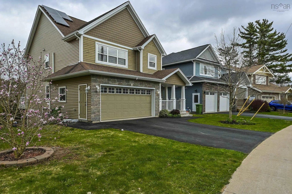 Welcome to 104 Hollyhock in sought-after Bedford West! If you are looking for a stunning 4+1 bedroom family home in a fantastic community then this is the one. The location is ideal as you are close to major amenities, coveted schools, parks/playgrounds, the BMO Centre, new bus terminal, and the highway for an easy commute. As you enter, the spacious main foyer leads to the formal dining room perfect for dinner parties. The living room beams with natural light from the oversized windows. A natural gas fireplace with battery backup provides a cozy ambiance, while the ductless heat pump supplies efficient heating and cooling. The kitchen features beautiful custom Cherrywood cabinetry, quartz countertops, large island, and a natural gas range. The walk-out leads to the back deck which is the perfect place to entertain family and friends at Summer BBQs! The green-belt beyond the backyard provides privacy. Heading back inside, a two piece bathroom with laundry, and a 2 car garage completes the main level. The stunning primary bedroom provides a full private ensuite bathroom with double sinks & custom Cherrywood cabinetry, spacious walk-in closet, and a ductless heat pump. Three additional well-sized bedrooms and a full bathroom gives ample space for family and guests. The lower level has a sizable family room perfect for movie nights, an additional bedroom, full bathroom with walk-in shower, and a storage room. The lower level walk-out leads to a relaxing patio. The solar system on the roof, three ductless heat-pumps, natural gas, and hot water on demand shows a thoughtful commitment to efficient heating and energy consumption. As you can see, this home has been meticulously maintained by the current owners. A fantastic find for $899k!