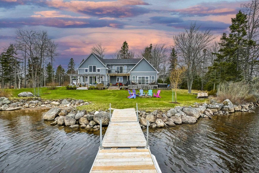 Welcome to this corner of paradise on the well-known Murphy Lake. This contemporary, fulltime home enjoys 3 spacious bedrooms and 3 full bathrooms (2 ensuite), for a total of 2,460 sq. ft of fabulous living space including a luxurious main floor primary bedroom suite which was added in 2014. The home is enhanced with 2 elegant propane fireplaces, one electric fireplace, a gas range, 5 heat pumps, wired for a generator, second floor balcony which is now the ultimate guest oasis and so much more. Revel in the captivating design featuring cathedral ceilings in an abundance of natural light. Step onto the expansive 50 foot plus deck overlooking the lake, approximately 450 ft of waterfront, complete with a dock for your boat and a hot tub for ultimate relaxation on your private 1.2-acre lot. Concluded with a double car garage wired for your convenience and storage, all appliances are included, and this home is ready to fulfill your lakeside dreams. Only 19 minutes to the core of Kentville.