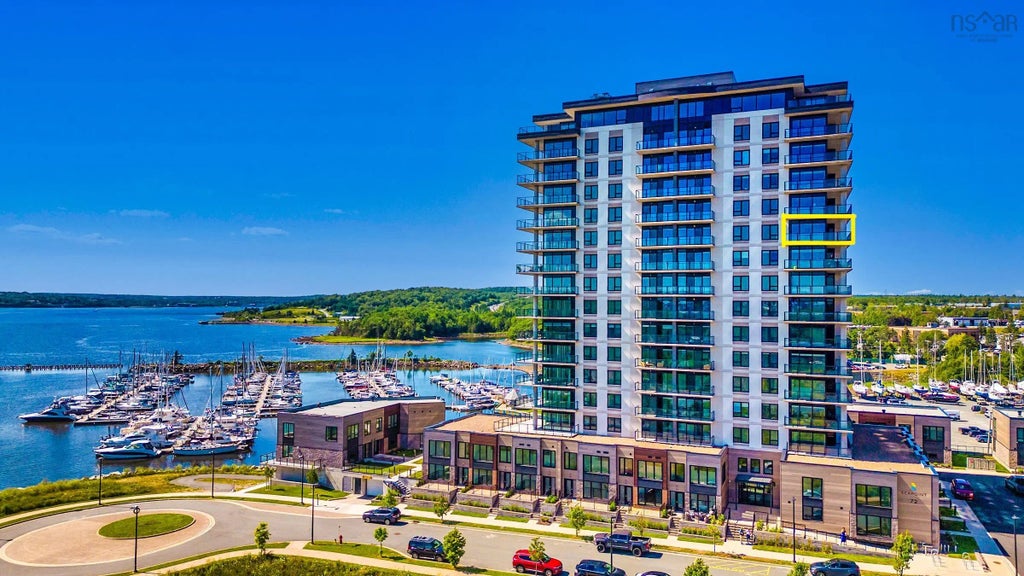 Nestled at the edge of the shimmering waters, the new Seapoint Condominiums present an exquisite living experience combining modern luxury with breathtaking views . This captivating corner unit spans just over 1,200 square feet and boasts dramatic floor-to-ceiling windows that invite the golden hues of each sunrise directly into your home. The open-concept layout flows around a sophisticated central island, creating a seamless space for cooking, dining and entertaining. Two elegantly appointed bedrooms, each complete with its own ensuite bathroom, offering privacy and luxury in equal measure. The oversized walk-in closets offer generous storage solutions, enhancing the sleek and uncluttered feel of the home. The wraparound balcony is your front-row seat to the most picturesque sunrises, where you can watch the day begin with the sun glistening over the water. The resident lounge, professionally decorated and a state-of-the-art fitness center cater to all aspects of life, from relaxation to well-being. Positioned conveniently close to major highways and bridges, this location promises easy access to the city's offerings without sacrificing the tranquility of waterfront living. Residents will find themselves enveloped in comfort with low condo fees that cover heating and building maintenance, ensuring a worry-free lifestyle. The adjacent marina and Dartmouth Yacht Club cater to boating enthusiasts and provide a vibrant community atmosphere. On-site resident manager. Pet friendly! One underground parking space included. Coastal living is awaiting you!