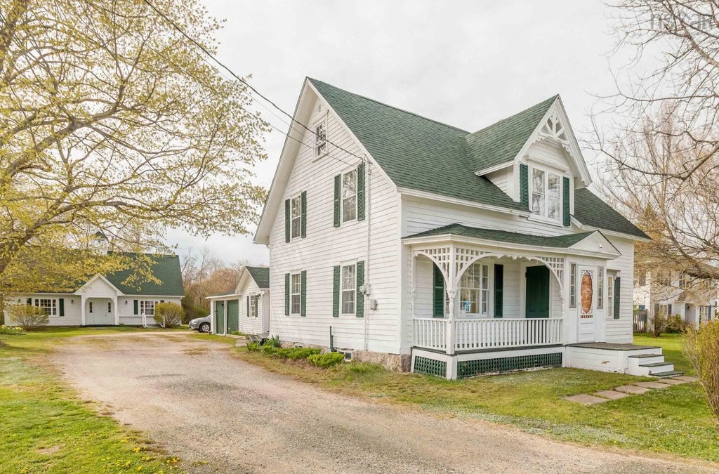 Here is a great opportunity to live in an historic but progressive town and have your business in the backyard! Bridgetown is known as the friendliest town in the Annapolis Valley! This 4 bedroom century home was built in 1838 and has retained many craftsman features. The eat-in country kitchen boasts an original fireplace, now enhanced with a ceramic wood stove and you will delight in the authentic fit & finishes such as Dutch door closets, bedroom hearths, original door hardware and decorative trim. The full height, modern walk-out basement is a pleasant surprise. The owners have maintained the property exceptionally well - new roof, new deck, new heat pumps, fresh paint etc. The wired and heated fully finished carriage house was built 12 years ago and was used as a gift shop. It has a full undeveloped loft and plumbing has been roughed in. Municipal water & sewer could easily be extended to the carriage house, making this the perfect guest house, Air B&B or other commercial enterprise - hair salon, dance studio, music studio etc. The possibilities are endless! Zoning allows for a variety of residential and commercial uses. You will be walking distance to all Bridgetown amenities, but because this property is located just outside of town limits the taxes are low. The generous back and side yards are fully landscaped with mature trees and gardens. When you step onto the lawn you can visualize the elaborate garden parties that once took place here. An easy walk takes you to the downtown core of Bridgetown with a grocery store, pharmacy, hardware store, liquor store, bank, library, restaurants and more. The Bridgetown school system has earned a reputation for being progressive with a high standard of education. The popular Harvest Moon Trail system that takes you all the way to Historic Annapolis Royal by bike or 4-wheeler is just down the road! Come fall in love with Bridgetown! Be sure to watch the 360 degree virtual tour & LIVE walkabout!