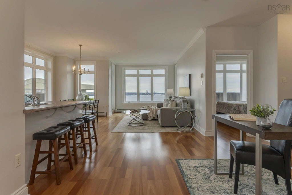 Discover the best of urban living in this stunning 3-bedroom, 2-bathroom condo boasting breathtaking water views from nearly every corner. With 1488 sq ft of finished interior space/1648 sq ft including 2 balconies, step into an open concept layout flooded with natural light, accentuated by expansive windows. Enjoy spacious living with a large primary bedroom, freshly painted interiors, and convenient in-unit laundry. Situated as a corner unit, this unit offers privacy and tranquility. Embrace comfort with included heat and hot water in condo fees, along with the convenience of one underground parking space and an additional storage locker. Experience great amenities including a gym, common room, and library, all within a pet-friendly building. Indulge in the perfect blend of convenience, style, and relaxation all with remarkable views of the Bedford Basin.
