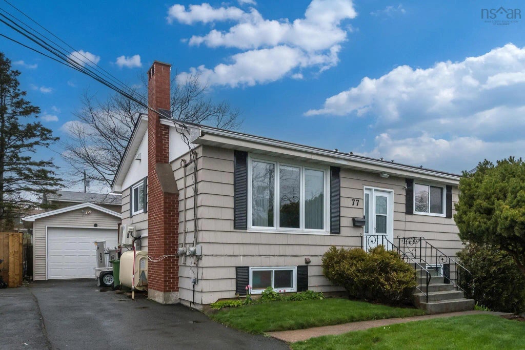 Welcome to 77 & 77.5 Convoy Ave. Situated on a quiet cul-de-sac. Close to schools, churches, Super markets & many great restaurants. On main bus route close to Bus Terminal. Two minutes from Highway 102 & 103 & 10-15 minutes to downtown Halifax. 45 minutes to Halifax Airport.A versatile property that can serve as either a feature-rich single-family home or a duplex with a separate income-producing apartment. This R2-zoned property includes completely independent living spaces with separate laundry facilities, power meters, driveways, & gardens, though it offers internal access for single- family use. The home boasts numerous upgrades including HRV, dual mini split heat pumps for heating & cooling, backup oil-fired hot water baseboard heaters, & a durable aluminum Interlock shingle roof with over 30 years left on its transferable warranty. The gardens are well-kept & ideal for gardening enthusiasts. The lower-level apartment features wheelchair-accessible walk-out access & is currently rented to long-term tenants. The main floor includes three bedrooms plus an office, a full guest bathroom, a modern kitchen, & a spacious main suite with a modern en-suite bathroom & walk-in closet. It also offers a large, extended garage that can accommodate a car plus motorcycles, ATVs, or serve as a workshop.
