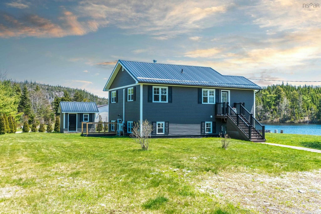 Welcome to your waterfront paradise! This beautifully updated home has had all the major items taken care of for you. The open design let's light into the whole home, and with a South exposure you get the sun all day long! It won't get too hot though, with 4 efficient heat pumps ready to cool you off. In the summer you can sit on your upper floor deck and enjoy the water view, or swim off your private dock in the lake. In the winter you can go outside through your basement door to skate and enjoy the stone firepit before coming inside to cozy up with the wood stove. Updates include: new metal roofs, siding, double garage with heat pump, composite decks and balcony in 2016-2017. Redesign and Renovation of floorplan, moved stairs, expanded primary bedroom, added walk in closet 2018. New water heater, flooring, sumps pump, sewer pump, gutters and railings between 2020-2023. This home is perfect as a retreat, or to live all year round. With both a shed and full double car garage there is enough room for everything and more!