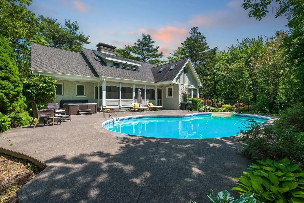 Welcome to this one of a kind, private oasis! 12 minutes to downtown, you can find this exquisite 5000 sq ft home regally perched atop a hill overlooking the Royal Nova Scotia Yacht Squadron and Northwest Arm. This 4 bed 4.5, bath home is truly one of a kind, they don't build them like this anymore. The main level features soaring ceiling replete with skylights, solid oak and slate floors, two sided fireplace for both spacious and cozy nights of entertaining. A chef's kitchen for entertaining with granite counter, gas stove, breakfast nook and huge dining room are rounded off by a comfy family room with views to the backyard and pool. The main floor bedroom features crafted built-ins, and its own large ensuite with jacuzzi tub. The kitchen and all bathrooms have in-floor heating which is amazing in the winter. The most loved area of this level though is the charming screened in sun porch for outdoor dining and evenings in the hot tub and pool with in total privacy. Up the beautifully crafted staircase and past the massive custom brick fireplace upstairs features another large bedroom, full bathroom with a skylight shower, plus primary suite with a bright and airy skylight lined walk in closet and dressing room with ensuite bath. The lower level is finished and has it’s own private entrance, already featuring a kitchenette, full bath, rec room/office, woodstove, and bedroom, this floor also has the utility room, workshop space and the tunnel connecting to the triple car garage. If you needed space for a family member or caretaker it would be an easy conversion, or simply great space for the kids to play. If you want to relax and swim in total privacy with the natural beauty of Nova Scotia surrounding you, this is your new home. Elegance and relaxation within a few minutes of downtown Halifax, this beloved house is one of a kind.
