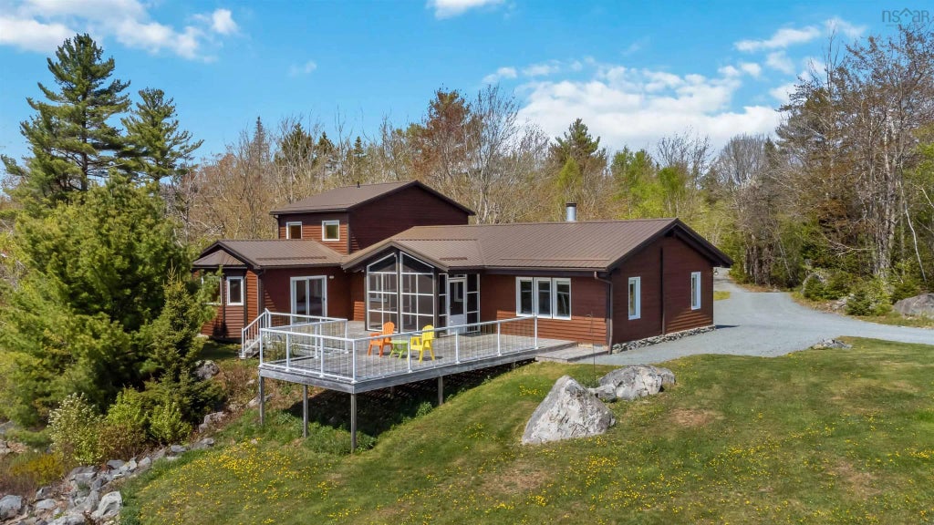Nestled down a gated grade-A driveway that loops around, you'll find this serene oceanfront retreat that is equipped with a standby generator, a wharf, and not just one, but two spacious garages. Included with the property is a neighbouring oceanfront lot featuring a well, septic system, and garage, offering future development potential. This quiet and peaceful haven spans 6 acres of low maintenance land with 427 feet of tidal waterfront, ensuring you'll never want to leave. If you enjoy boating and kayaking, picture yourself meandering up the beautiful Medway River or exploring the Medway Harbour around the islands and coves. The home is strategically facing south-west so you can enjoy those breathtaking sunsets in the evening. The primary bedroom features patio doors that open onto a back deck with see-through glass rails for unobstructed water views. The intriguing three-sided fireplace creates a warm and welcoming ambiance, the two heat pump systems provide efficient heating in the winter and cooling in the summer, and the practical electric baseboards are convenient, especially if you are away from the property. A fully screened-in and covered porch allows for outdoor enjoyment even on rainy summer days. The upper loft area would make an ideal entertaining space, studio, office, or 4th bedroom. FibreOp Internet is available. Located in a private subdivision with easy access to the highway, this 3-bedroom, 2-bath home is just 15 minutes from the town of Liverpool and the beautiful white sand beach in Beach Meadows, 25 minutes from Bridgewater, and 1 hour and 15 minutes to Halifax. Please contact your favourite Realtor to book a private viewing and for more information. A survey, list of upgrades, virtual tour, and video are available.