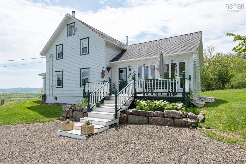 Charming is the word that comes to mind as you peer up at this Century home. Far more fantastic descriptives come to mind as you peruse the view across the Valley, enjoy the natural ambiance of the many fairy woods, the trickling brook, fields of forget-me-nots, shady dells, sunny acreages, and fragrant orchards, as this home sits atop a gentle slope as a Sentinel, guardian, of the beautiful landscape. Sitting on the grand south facing front porch, surveying your kingdom at the base of North Mountain, pondering the lives of many families that called the Sentinel home adds comfort to the experience. Enjoying the evening sun, and dining al fresco on the beautiful deck attached to your huge, bright kitchen, you can enjoy another more private natural experience. The five varieties of cherries that flourish here are but one of the many natural attributes that enhance the provenance of this exceptional property. The house is restored and renovated to a lovely balance of historical and modern convenience [new foundation approx 2005]. Bright and light, warm and cozy, private and space to gather, this house was built when people built to accommodate all times, stages, and seasons of living, and these spaces were enhanced when building techniques could improve those accommodations. Just a few minutes to Lawrencetown, Bridgetown and only 20 minutes to 14 Wing Greenwood.