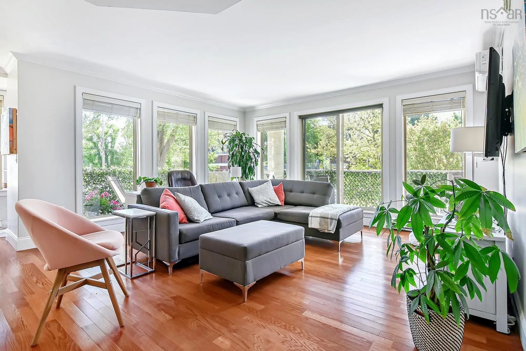 Welcome to the Hydrostone Place! Centrally located in one of the trendiest neighbourhoods on the Halifax peninsula this boutique condominium only has 25 units and is walking distance to many great restaurants, shops, schools and a short commute to downtown Halifax. This ground floor one bedroom plus den condo offers 1243 sq. ft of living space, an extra large primary bedroom with updated ensuite and walk in closet, an open concept kitchen/living room ideal for entertaining, many floor to ceiling windows allowing lots of natural light throughout the day, a large wrap around balcony(close to 200 sq. ft),engineered hardwood floors, a large updated kitchen with caesarstone quartz countertops and centre island, a ductless heat pump, an in unit laundry and a powder room with potential to add a stand up shower. The condo's unique design also offers many wheel chair accessibility features with its wide doorways, open spaces and conveniently located underground parking spot. This stylish concrete and steel constructed building compliments the historical architecture of this timeless neighborhood of the Hydrostone Market area. Call now to view!