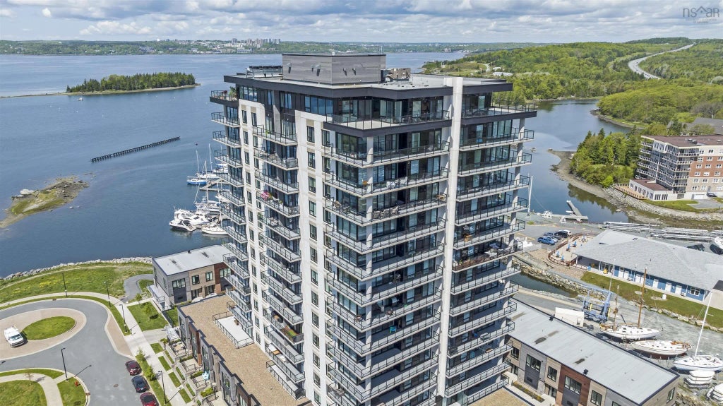 Welcome to your new home! This pristine, one-year-old condo offers a modern, luxurious living experience in the heart of Dartmouth. Boasting an open concept design, this space is filled with natural light from floor-to-ceiling windows, showcasing breathtaking views of the Bedford Basin. The kitchen has sleek modern cabinetry, stainless steel appliances and gorgeous quartz counter tops. The design of this condo is perfect for entertaining allowing you to be preparing meals in the kitchen and still being able to enjoy the company of your quests. When weather permits you can extend the party to the outside on the amazing wrap around patio. The bedrooms and bathrooms offer privacy and a spa like feeling. There is also a gym for your workout needs, and a common room with a BBQ.