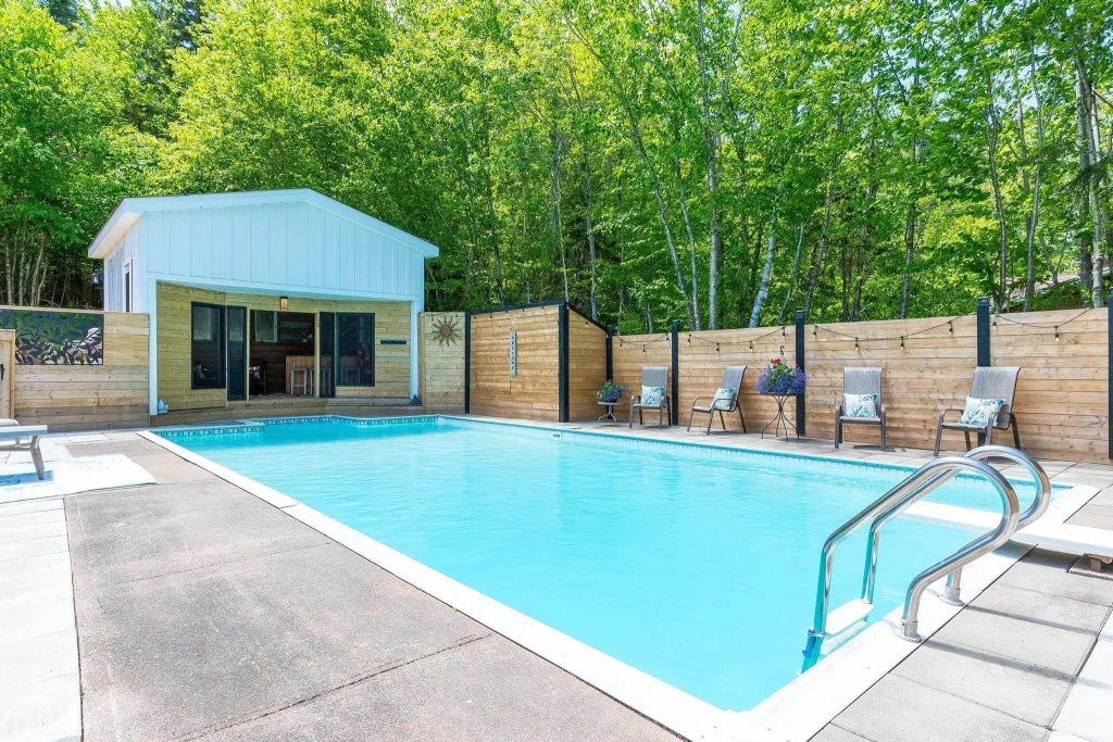 Charming bungalow with outdoor luxury, your dream home awaits! Every detail has been carefully considered to offer the perfect blend of indoor comfort and outdoor adventure. Whether you're diving into the in-ground pool, accompanied by a stylish pool house equipped with a bar, perfect for hosting summer pool parties, enjoying quiet evenings by the fire pit, or exploring nature by the frog pond, this property promises a life of joy and relaxation. This home boasts three cozy bedrooms with two located upstairs and one conveniently down, as well as two full bathrooms. An open concept eat-in kitchen/living room combo with patio doors leading to the large back patio overlooking the backyard oasis. Stay comfortable year round with the efficiency heat pump installed upstairs.The walkout basement adds an extra layer of functionality and living space. The spacious garage not only offers ample room for vehicles and storage but also features a loft, ideal for a workshop or additional storage. You will also find an additional detached loft with power, ready to be transformed into a studio, home office or hobby room. Don’t miss the chance to make this stunning space your own where everyday feels like vacation!