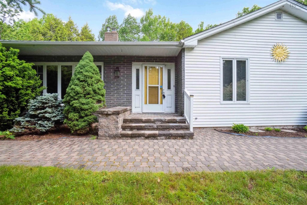 Spacious and so solid this family bungalow has over 1400 sq ft on the main floor. Sitting back from the road its so private with mature landscaping on just a stunning lot. With about an acre cleared the property has 8.91 acres in total. Multi car paved parking, double attached garage and an interlocking stone walk to a closeted front entry. It's spacious living area has a huge newer vinyl window offering a view to the front yard greenery. The Dining area has newer vinyl sliding door to south facing composite deck with pvc railings. Its quaint original kitchen includes a peninsula & appliances. 3 main floor bedrooms include the Primary with 3 pc ensuite & laundry (washer & dryer stay) plus a private deck in a super sized level backyard. Seamless Hardwood floors run through the main level beautifully done with no thresholds. Live completely on the main or use the Family Room, Den, workshop and cold room on the lower level. All this with Heat Pump heating & cooling. Price reflects large land parcel while allowing room for decor updates.