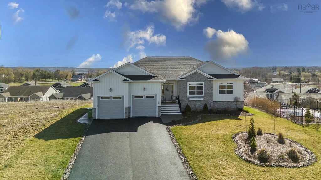 Get swept away by this stunning custom-built 3 year old bungalow nestled in an executive neighborhood in Falmouth, NS. This home boasts exquisite upgrades throughout, including a sleek Corian countertop in the spacious kitchen that offers both elegance and functionality. Enjoy an abundance of natural light streaming through transom windows on the main level, creating a bright and airy ambiance. The main level features an open concept living area that is perfect for entertaining guests and hosting family gatherings, where you can take in the view while watching the children play in the backyard. The primary bedroom is elegant and spacious with a gorgeous ensuite and walk-in closet. There are 2 additional inviting bedrooms with double closets, a full bath room, plus main level laundry and mudroom that are easily accessed from the garage into the home. Descend to the lower level, where 2 additional bedrooms await, complimented by a beautiful family room with a walkout to the backyard. Indulge in versatility with a playroom that could be transformed into a cozy media room, offering endless possibilities for leisure and recreation. The home is kept comfortable central heating and cooling. Convenience is key with an attached garage and a paved driveway, ensuring easy access and ample parking space for residents and guests alike. With just under 4000 square feet, this meticulously crafted bungalow offers a perfect blend of style, comfort, and functionality, making it the ideal place to call home. Call your favorite Agent to book your private showing today!