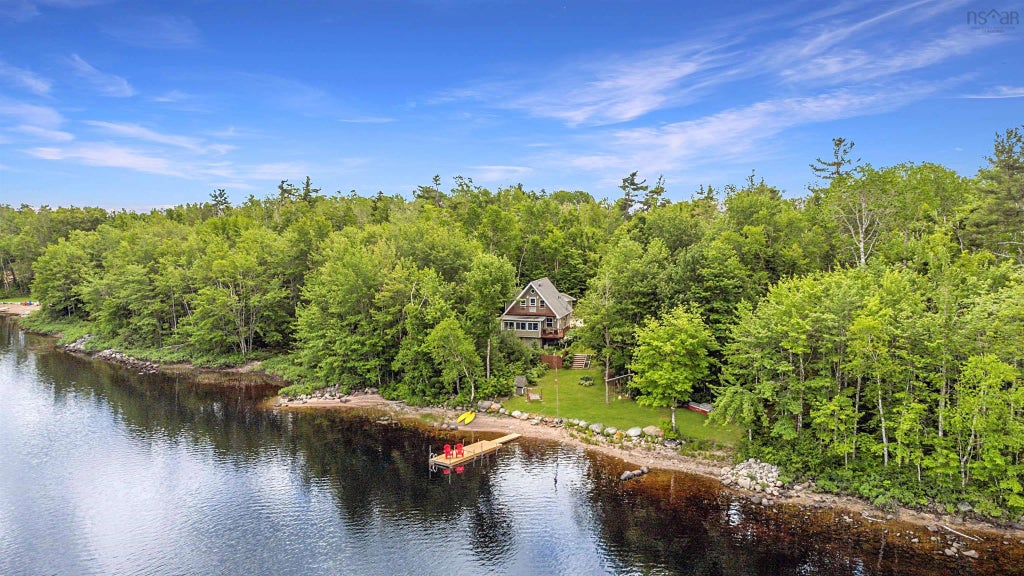 Welcome to your dream Nova Scotian lake house, situated at the end of a peaceful road for maximum privacy. This home or cottage is located 80 minutes to downtown Halifax & 90 minutes to Halifax Stanfield airport. The 1,645 sqft chalet-style home features 3 bedrooms and 2 full baths, offers ample space for family and guests. A stunning primary bedroom offers you your own personal private balcony overlooking the lake. The perfect place to enjoy morning coffee or unwinding in the evenings. The large downstairs rec room leads out to a new hot tub on a freshly poured and stamped concrete pad, making it an ideal spot for entertaining. With approximately 200 feet of lake frontage, this property provides direct access to a motorized lake, perfect for boating and other water activities. The outdoor space is designed for relaxation and recreation, with multiple levels of decks/patios and a superb fire pit overlooking the lake. The well-maintained dock enhances your lakeside experience, whether you're fishing, swimming, or enjoying the view. Equipped with a new, high quality Generac propane generator and a large propane tank. This home ensures peace of mind during winter months, making it perfect for year-round living. The 1.5 car detached garage provides ample storage for vehicles and recreational equipment. Situated on a private road, the lush, tree-covered lot enhances the sense of seclusion and connection with nature. This exceptional four-season home isn't just a place to live—it's a lifestyle. Whether you're seeking a seasonal retreat or a permanent residence, this lake house promises to deliver an unparalleled living experience. Don't miss the chance to make this stunning property your own and enjoy the best of lakeside living in Nova Scotia. Schedule a viewing today and step into your personal paradise. Don't let this rare opportunity slip away; schedule a viewing today!