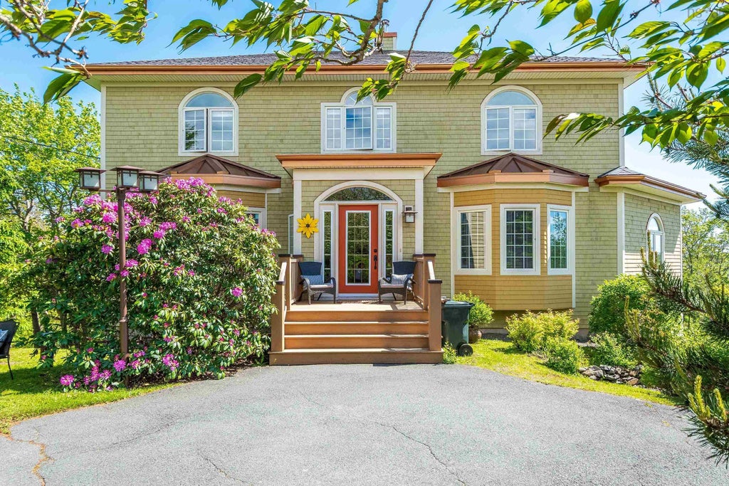 Welcome to 10 Fortress Drive: a traditional exterior with a modern interior. This home is perfect for a couple needing spacious main floor offices, each with privacy provided by double French doors. One office features a custom walnut library, while the other has built-in storage, shelves, and a propane fireplace. The main living area can be separated by another set of double French doors. The dining area has a custom Jatoba 10-foot table seating 8-10 guests, a built-in Jatoba buffet with floating shelves, and a Jatoba divider with cabinets and a bar-height counter. The kitchen side of the divider includes a cooktop, oven, and custom concrete counters, all designed by Hanrahan & Sons Fine Woodworkers. The main floor also includes a light-filled living room with wrap-around windows, a sleek Belgian Stüv wood fireplace, a large utility/laundry room, and a guest bathroom. Upstairs, the Landing/Gallery features wrap-around windows, a balcony, and south-facing views over Herring Cove to Chebucto Head. This floor has four bedrooms and three full baths. The primary bedroom has an ensuite bath with a corner jacuzzi soaker tub and in-tub shower, and two generous walk-in closets. Adjacent to the main bedroom is a smaller bedroom with a good-sized closet and a large north-facing triple window. Another large bedroom has a double closet and a big triple north-facing window. These two bedrooms share a full bathroom. The fourth bedroom upstairs has a south-facing window and an east-facing window in its ensuite bathroom with a shower, ideal for a teenager. The lower level, mostly above grade, includes south-facing study/lounge with soapstone Osburn wood stove, full bath, large bdrm with 6 closets & workshop/storage with kitchenette. This floor also has a 725 sqft garage not incl in the total 4803 fin sqft, making total sqft 5528. The garage outlet can be switched to an electric vehicle charging outlet. All three levels have hardwood floors.