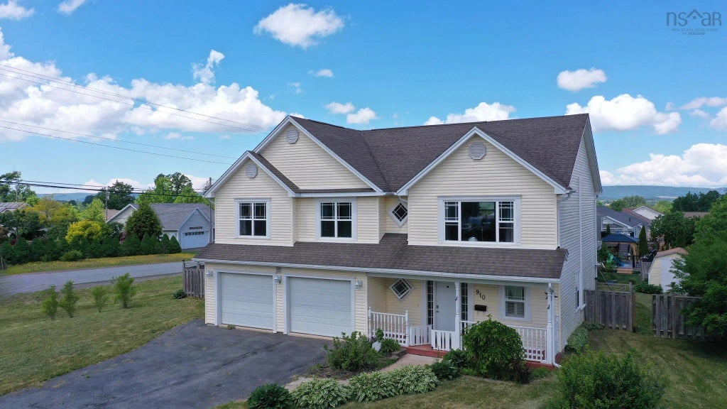 This home will appeal with ceramic and wood flooring and large bright rooms. Both levels are a decent size,well laid out. The kitchen has an ideal setup with tons of counter and cabinet space, and its open design witha large island lends itself well to entertaining. The master bedroom has 3 pc ensuite and lg walk in closet andmain bath features whirlpool tub. Built-in garage has ample room for 2 cars as well as storage. Lower levelhas a great rec room with walkout to backyard. Paved driveway and a view of the North Mtn complete thishome on large corner lot that is only mins from Kentville or New Minas. Great Value here! Note: The Igniteron the Pellet stove does not work and there is a crack on the controls of whirlpool tub button, taped over.