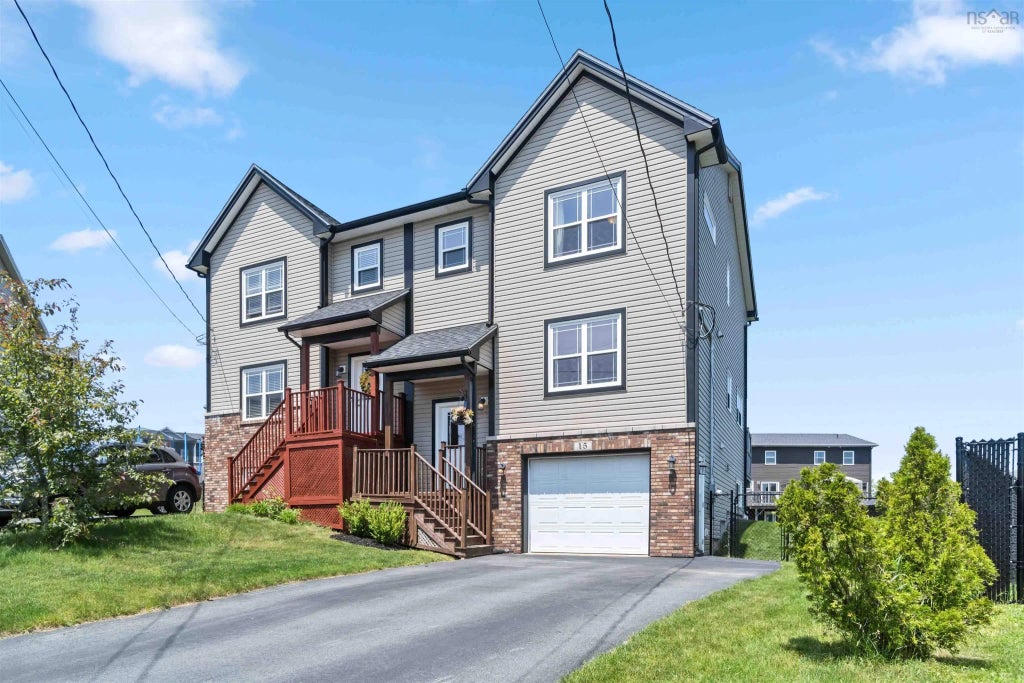 Discover this charming semi-detached home ideally situated in a quiet cul-de-sac in Middle Sackville, perfect for families seeking tranquility. The property features a landscaped and fenced backyard with a private deck accessible from the kitchen/dining area, ideal for outdoor gatherings. Although this may be a beautiful, quiet cup de sac not every property features such a large backyard! Inside, a split entry design separates the main floor's spacious living room, half bathroom, and open concept kitchen/dining/den office space, catering perfectly to everyday living and entertaining. Upstairs, three bedrooms include a primary suite with an ensuite bathroom and ample closet space for privacy and comfort. The finished basement offers a cozy family room, storage closets, and direct access to the single attached garage, ensuring convenience year-round. Ducted heat pump and cooling provide efficient climate control, complementing the home's thoughtful layout designed to maximize natural light and airflow. Located close to schools, parks, shopping, and major routes, this home combines modern comfort with a peaceful neighborhood ambiance, offering an exceptional opportunity for a relaxed lifestyle in Middle Sackville.