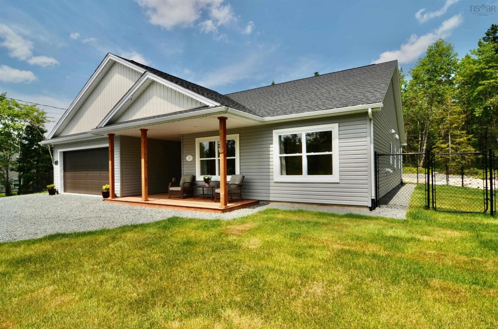 Better than new construction! With approximately $50,000 in after-purchase expenditures including landscaping, fencing, an expanded driveway, a 2nd heat pump and a radon monitoring system, this home is truly move-in ready! Built by Ramar Homes, this one-level, one-year-old bungalow in Glen Haven Estates, is ready for you to call home. The “Oasis”, with its open-concept floor plan, offers a wealth of benefits that traditional closed-in floor plans just can’t beat. The airy and inviting layout conveys a feeling of spaciousness as living areas flow into one another. The chef-inspired kitchen offers beautiful blue, custom colour cabinetry, a large centre island, solid surface countertops and a spacious and convenient pantry. Promote togetherness with family and friends with a living room, dining area, and convenient access to outdoor spaces. Relish parking in your double built-in garage on rainy and snowy days while bringing in the groceries. Yet even on those dark rainy days, you will enjoy the abundance of natural light this design naturally lends itself to. Large primary bedroom suite with ensuite bath and walk-in closet, laundry room, 2 more supplementary bedrooms and 4pc bath complete the layout. A coastal community, on the scenic Lighthouse Rte, with all the amenities you need only 10 minutes away. The essence of country living with the ocean, city, shops and restaurants close by. 9+/- Atlantic Home Warranty remaining and quick closing available.