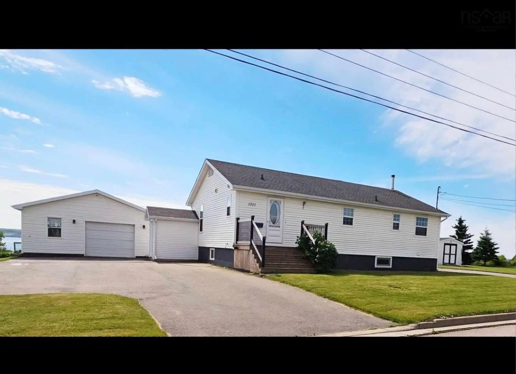 Welcome to this stunning oceanfront property offering paradise on the point. This ideal property offers the perfect blend of serenity and amenities. Located on a private, landscaped lot less than 20 minutes to Sydney, only minutes to North Sydney, Florence, Bras D'or or Sydney Mines. Whether you love to listen to the ocean shores, capture nature's beautiful moments or simply watch the boats cruise by daily, you have it all and only minutes to golf, parks, beaches and schools. An ideal bungalow style home welcomes you to a bright eat in kitchen with gleaming natural light, in floor radiant heat and a heat pump to for that extra cooling during the summer and capitalize on energy savings during the winter months. A double car garage and deck for entertaining or simply relaxing, offering the perfect blend of luxury and tranquility. With a double car garage and 2 paved driveways providing ample parking. The main floor layout offers 2 generous bedrooms with a full bathroom and a three piece bath (ensuite) off the primary bedroom. The living room boasts a custom vaulted window to ensure ocean views from all venture points. The secondary suite on the lower level offers an opportunity to rent, lease or AIRBNB to offset monthly costs. Live in luxury and rent the lower level. A perfect addition for additional living space or a nice comfortable place to entertain friends and family or the possibility of an in a law suite. Additional perks that make this home a worthwhile investment include the generator panel, convenient furnace zoning, the hot air exchange in utility room, main floor washer and dryer hookup, lower level washer and dryer and separate entrance to the lower level. The private convenient deck with protected enclosures complete this amazing package. The garage is immaculate and wired with power and shed on the opposite side of the yard. The rear yard in fenced and the grounds are picture perfect!