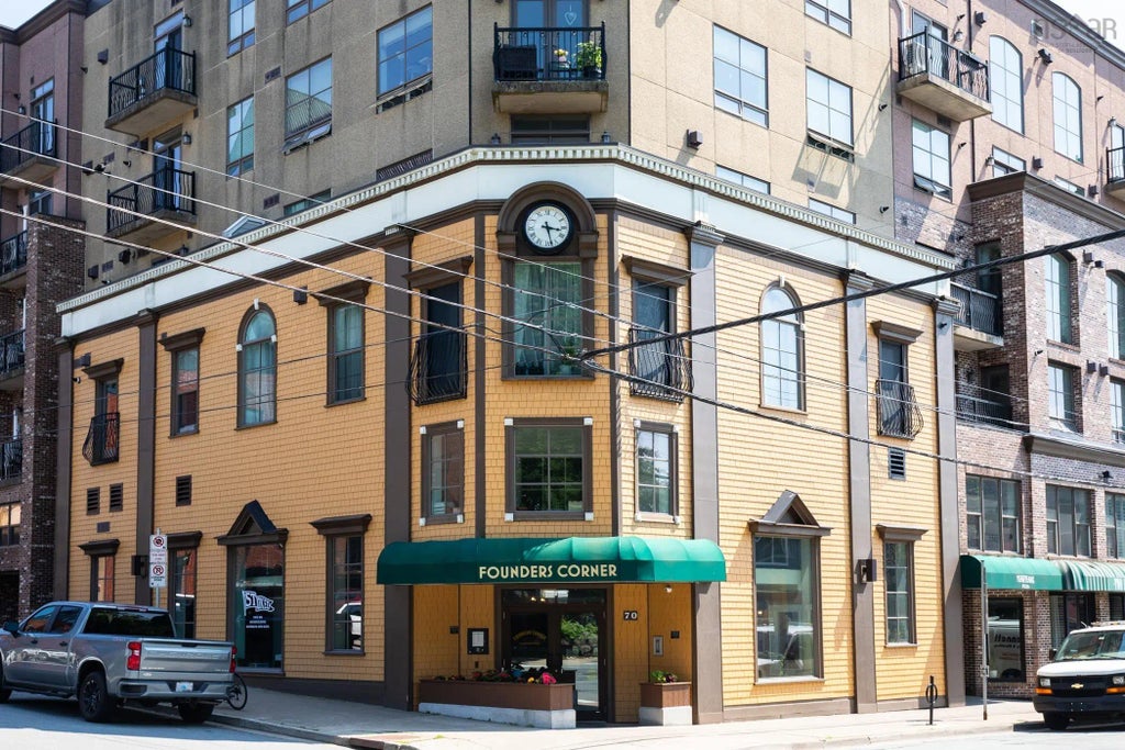 What a delightful, fresh and perfectly situated condo we have for you! I asked my client what she liked about living in this one bedroom, downtown Dartmouth condo. She said it's close proximity to all the downtown core has to offer. It's close to the Ferry, Dartmouth crossing, and the airport. Then, of course, there's the best pizza in town, Yeah Yeahs and a wonderful coffee shop on the street level. This condo is perfect for someone who appreciates a thoughtfully designed space. The heated polished concrete floors add a stunning touch! It has a custom-designed wall-mounted gas fireplace, gorgeous granite kitchen countertop, insuite laundry and storage. The bedroom has a large closet and a very cool painted cement beam. The gorgeous rooftop patio is great for hosting BBQs, and watching fireworks. If it's raining you can also hang out in the solarium. Don't like to shovel in the winter, don't worry you won't have to, with underground parking!