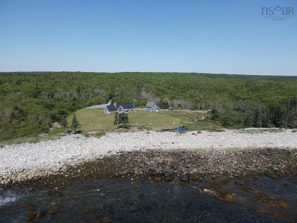 Discover the epitome of coastal luxury on this expansive 110-acre property, which boasts 1500 feet of water frontage, situated near the esteemed White Point Estates. This breathtaking home offers unparalleled ocean views from almost every room, offering a serene and picturesque living experience. The open-concept design seamlessly integrates the living, dining, and kitchen areas, creating a harmonious flow bathed in natural light. A chef's dream, the kitchen offers stunning stainless steel gas appliances, ample counter space, and a large butcher block island. The living room, with its striking stone fireplace, exudes both grandeur and coziness, perfect for relaxation or entertaining. Large double glass doors lead you to the patio which overlooks the ocean, providing an idyllic setting for outdoor gatherings. The primary bedroom is a private sanctuary, offering breathtaking ocean vistas and a wood-burning fireplace that enhances the tranquil ambiance. The ensuite includes a walk-in closet and a spa-like bathroom with a walk-in tiled shower, heated spa tub, automatic blinds, and in-floor heating. Beautiful hardwood flooring throughout much of the home adds a touch of timeless elegance. Down the hall, a second bathroom with a tiled shower, a home office or guest bedroom, and an attached garage provide convenience and versatility. Outside, a separate detached garage houses a stunning guest suite complete with a three-piece bathroom, kitchenette, skylights, and incredible views. This space offers numerous possibilities, from an AirBnB rental to an ideal in-law suite. Practicality meets sustainability with features such as a metal roof, a substantial 17.8-kilowatt solar system, and an on-demand water heater. For added peace of mind, an 11kW Generac Generator ensures backup power. An additional 15 acres with 210 feet of shoreline may be available for purchase at additional cost, further expanding the possibilities of this extraordinary coastal retreat