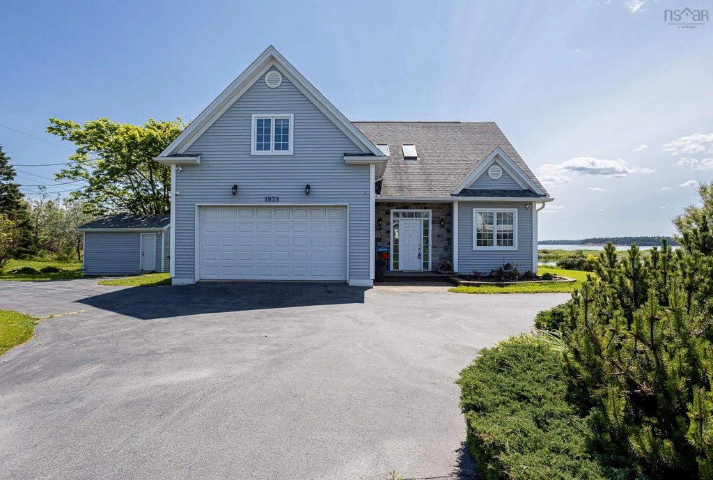 Welcome to this bright, well landscaped, open concept home offering almost ½ an acre of waterside views of Halifax harbour and McNab’s Island. This Sawler built custom home features 9-foot ceilings on the main floor and a vaulted ceiling in the main living area, as well as an open concept dining, living, and Kitchen area. Also, a spacious main floor primary bedroom with double sided fireplace, walk in closet, and large 5 pc ensuite bath. A Convenient main floor office is located just off the entrance and flows through to the kitchen. The rear deck spans all 43 feet of the home’s width and features a covered, screened 10 x 10 porch with removable screens. Upstairs, you will find a bright, open, vaulted family room overlooking the lower living area as well as 2 more spacious bedrooms. There is also a convenient den/storage space on this level, a great space for the kids to do their homework or use as a home office. The single garage features a double wide door with ample space for a vehicle and all the toys, i.e. ride on mower, snow mobile, etc. The property features a shed and a convenient circular drive with an additional right of way for the attached driveway. An upgraded security system is also included. The upper den/office could be used as a fourth bedroom for a child, although it has no closet.