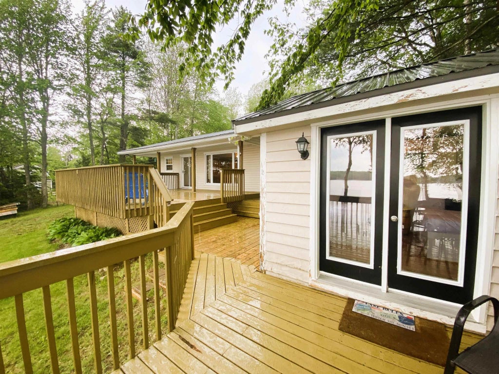 Discover paradise at this stunning retreat on Lake Torment! Enjoy year-round living with over 80 feet of waterfront, perfect for those seeking solace or adventure in the great outdoors. A welcoming flagstone walkway leads you to the captivating cottage. Experience all of the comforts and take in the natural beauty all around you. Open concept design seamlessly blends the living, dining, and kitchen areas, which boasts new appliances, a wood countertop, and a prep island, making it a joy to prepare meals after a day of exploring. The living area, with cozy woodstove, invites you to relax and unwind. The cottage features two tranquil bedrooms and a modern bathroom. Recent upgrades, including flooring, a humidex and heat pump, ensure comfort and efficiency. Outside, tiered decks are great for entertaining and soaking in the breathtaking lake views. The versatile bunkhouse is ideal for guests, home office, playhouse or extra storage. The wharf is perfect for swimming and water activities. Gather around the fire pit for evenings under the stars, creating lasting memories. This gem offers the perfect blend of modern comfort and rustic charm. Embrace Lake Life at this idyllic escape, designed for nature lovers and adventure seekers alike.