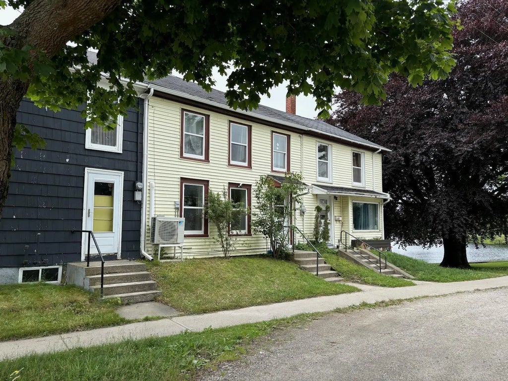 Water frontage on Lake Milo! Nicely renovated lakefront townhouse in Yarmouth's desirable north-end. Great location, walkable to parks, schools, hospital, shopping and restaurants. This townhouse has been nicely renovated and is heated by heat pump and electric baseboard. There is a chimney in place that could be used for a wood stove if desired. Inside you will find a spacious living room, dining room and large kitchen with newer appliances. Upstairs there are two bedrooms and a bathroom that has been recently updated. Outside you have lake views from the back deck and access to Lake Milo which is very popular for swimming and boating. This is a great location with much to offer.