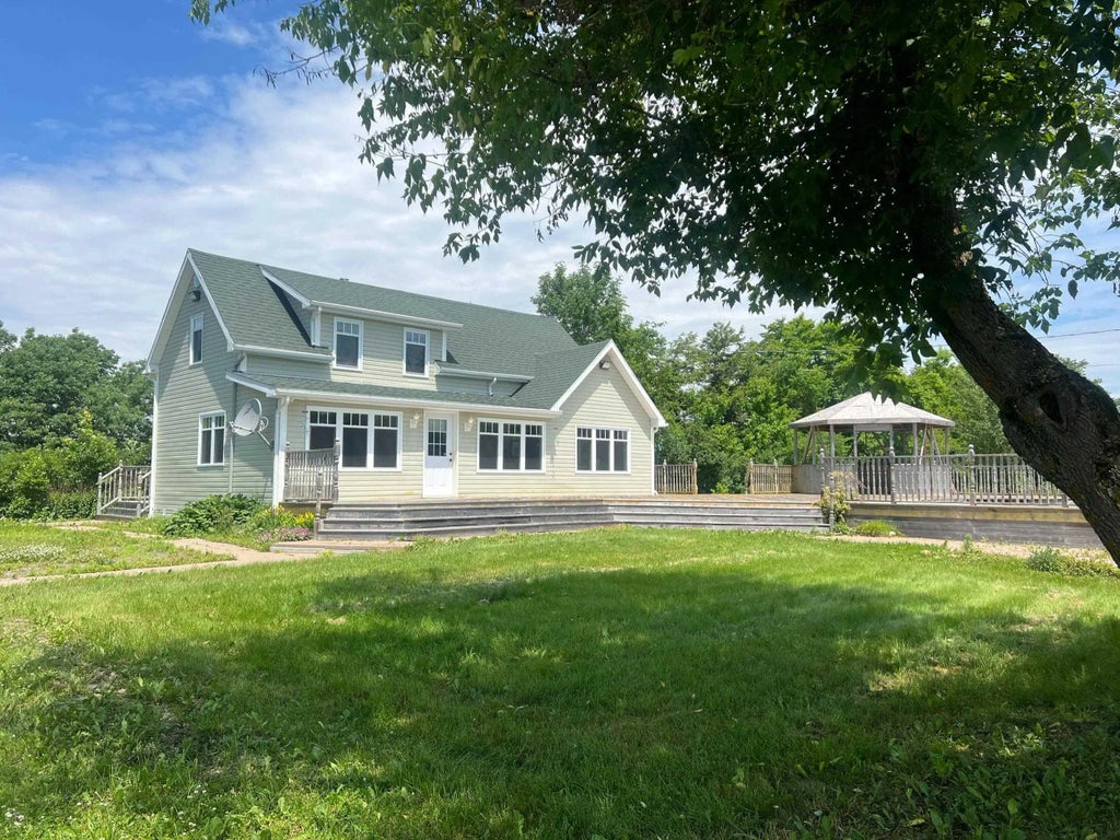 Situated on over 5 acres bordering the Stewiacke River, this homestead is waiting for its new owner to give it their personal touch. A standout feature of this property is the 50x30 detached garage with 36x30 work area, 12-foot-high ceilings, plumbed for body & mechanic work, a 24x14 paint booth, a spacious bay for working & an oil and water separator in the floor. The garage is wired with its own power meter. Included in the sale in the garage is the Forward 4 post hoist (6000 pounds), complete air compression system with a 80 gallon vertical upright by Devilbiss, with a 7.5 hp moto, décor on the walls, lawn tractor, snow blower & air dryer. The farmhouse has had several updates, including vinyl siding, roof shingles, electrical system with a Generac generator, a fiberglass oil tank, gyproc in all but 2 rooms, insulation, a kitchen with solid surface countertops & new flooring. The home has been wired for surround sound in the ceiling on the main floor. The upstairs bathroom has been modernized, while the main floor has a 4 pc bathroom that will need updating. Additionally, the home features a den, a sunroom & main floor laundry located in the back porch with a sun deck that could offer a view of the river with some landscaping. Upstairs, there are 2 large bedrooms—one with updated flooring & the other ready for renovation. All contents in the house will remain & this property is being sold “as is, where is”. Outside, you'll find a large front deck with a gazebo & space for a 27 foot above-ground pool. This home is located about 8 kms from Upper Stewiacke, where you'll find a restaurant, co-op grocery store, gas station, firehall, churches & an elementary school. Call today before it's gone!