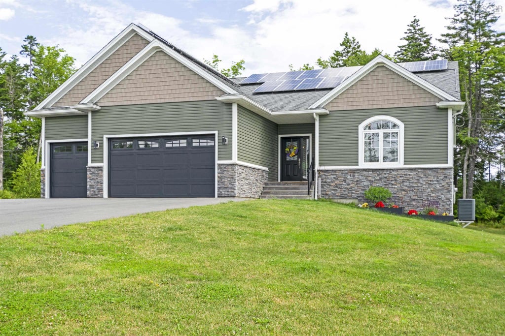 This breathtaking bungalow is a masterpiece of design and craftsmanship, surpassing even the highest expectations. From the moment you step inside, you'll be captivated by the soaring 9’ ceilings and the dramatic open-concept great room, with its stunning vaulted ceiling. The kitchen is a showstopper with a 12’ island, walk-in pantry, and seamless flow into the cozy living room, complete with a propane fireplace. The elegant dining area is perfect for entertaining, plus walkout and enjoy summer evenings on the covered deck. The luxurious primary suite is your personal retreat, featuring double walk-in closets and an opulent ensuite. Pamper yourself in the soaker tub, custom shower with rain head, and dual-sink vanity. Two additional main floor bedrooms and a full bathroom provide ample space for family or guests, while the mudroom, conveniently located off the garage, includes a sink and laundry area for added convenience. As you head to the lower level you will appreciate a true highlight of this home - the spectacular cantilevered maple staircase with stainless steel railing and glass. The bright, finished walk-out basement is an entertainer's paradise, boasting a family room, recreation room, fourth bedroom, den/office, full bath, and utility/storage room. Additional features include a triple garage, landscaped yard, ground-level patio, paved driveway, and ducted heat pump. The newly installed solar panels are so efficient that the total power cost for the house was ~$500 for the entire last year. Don't miss your chance to own this extraordinary, energy-efficient home in Indigo Shores.