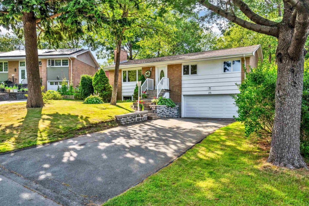 Welcome to 25 Woodward Cres. a lovingly maintained 4-bed, 2-bath home nestled on a quiet street in Clayton Park, perfectly spacious for families and fully equipped for entertainers. Upon entering your foyer, you are greeted by a bright generous living room with large windows, and beautiful hardwood floors where family gatherings or relaxing evenings are enhanced by the cozy wood-burning fireplace. The ambiance flows through your living room to your dining room - the perfect setting for hosting dinner parties and family meals. Continuing to the well-appointed kitchen, with modern appliances, ample counter space, lots of storage, built-in bar top with room for a 2 stool dining nook, or added counter space when entertaining. Leading down the main floor hallway you will find a full bath with modern finishes, 2 bright bedrooms with great closet space, as well as the nice sized primary bedroom accommodating a king-size bed, and boasting an extra deep closet. The fully developed basement serves as a cozy retreat, featuring a family room perfect for movie nights or casual hangouts, and a wet bar to enhance evenings spent in. The 4th bedroom, and additional office/flex room offers an excellent versatile space. From the basement, you access your 2nd bathroom with laundry and a large indoor garage with room for additional storage. Sitting on an extra large lot, the outdoor living space is equally impressive, with landscaped front and backyard that provides plenty of room for outdoor activities. The double deck offers a great space for outdoor dining, barbecues, or simply enjoying a moment to take in the serene nature of the neighbourhood. 25 Woodward also offers additional parking in the large driveway, new retaining wall, and the location is perfect for central living. Only minutes from shopping, dining, community trails, and transit, within walking distance to great schools, and just 10 minutes from downtown Halifax, beaches, and boardwalks.