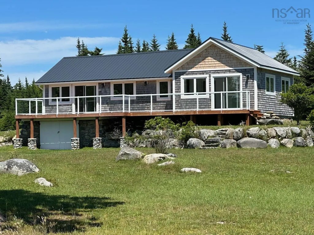 Welcome to Coffinscroft Point, a totally private 4.15 acre oceanfront retreat on Nova Scotia's South Shore just a few minutes outside of Barrington. Surrounded on three sides by forest that opens to a large landscaped property, an elevated ocean-oriented cedar shake home with fantastic sun exposure and spectacular views from almost all rooms overlooking the 420ft of stunning waterfront, this amazing property comes complete with seawall, your own small beach, boat launch and an old grandfathered wharf. Standing on the deck you look across the bay to Cape Sable Island and the causeway connecting the mainland to the province's most southern island. To the left is Sandhills Beach Provincial Park with its massive sandbank that stretches several kilometers into the bay and is a fun 10-minute paddle on your stand-up board or kayak, or a two minute drive if going by car to enjoy the very warm summer water temperatures. The area is home to multitudes of incredible white sand beaches including Crows Neck Beach with its emerald blue shallow waters that are reminiscent of Caribbean beaches which is about a ten minute drive from the house. The original home on its massive 3 foot wide stone foundation underwent a complete reconstruction around 2006-2008, at which time the previous owner enlarged the home and added a new septic system with fibreglass reinforced concrete septic tank. Over the past 20 months, under the current owners, the home has again been completely re-envisioned and redesigned to craftsmen quality standards. The structure has been enlarged to accommodate a nearly 200 sq.ft. primary bedroom plus a generous ensuite. A separate laundry area and a second full bathroom were built between bedrooms 2 and 3 for easy access. The open living area has been totally redone including modern kitchen with custom island and brand new never used appliances await the new owners. Many more details available in the document of Realtor.ca or in the photos