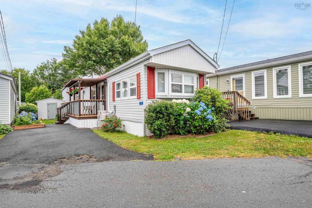 Home sweet home...that is exactly how you will feel when you arrive at 17 Chebogue Lane. This well maintained 2 bedroom, 1 bath, sit in kitchen with pass through window, cozy living room with ductless heat pump mobile mini is move in ready in sought after Woodlawn Village! You will appreciate and enjoy this mature beautiful lot with beautiful gardens while sipping on your morning coffee. This home is complete with a paved drive, large deck and 8x8 shed. The location is within walking distance to many amenities, walking trails, public transit and would make for a perfect starter home or downsizing opportunity. Updates include new pitched shingle roof, some new flooring, new exterior doors and freshly painted throughout. This is a pet friendly park (upon park approval) and water is included with your fees. You won't want to miss out on this one! Book your viewing today.