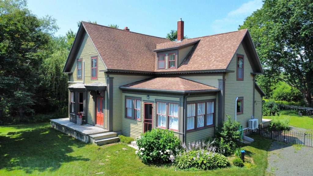 Recent extensive renovations have this century home ready for you to enjoy with solar panels(2023), heat pumps(2022) for heating and cooling, appliances(2021/2023), blown in wall/attic insulation(2021/2022), drilled well(2023) and more! Ideally located with gorgeous views of the Annapolis River and just 10 minutes away from historic Annapolis Royal and Bridgetown. The wide open kitchen and dining room areas offer high ceilings and charming exposed hand hewn beams perfect for entertaining your visiting friends or simply enjoying a warm seat around the new wood stove while waiting for dinner to finish. Relaxing in the large living room with its own beautiful new wood stove you can enjoy the custom circular staircase wind its way upstairs. This beautiful property offers the very best of country living and relaxation. With the vast majority of renovations and upgrades complete one of your toughest decisions just might be which of the warm bright south facing sunrooms to enjoy your morning coffee in or which deck to get comfortable on and read your favorite book. There is a fenced run great to keep your pets safe and a chicken coop if you want fresh eggs. The mature trees offer ample protection to your backyard sanctuary while allowing enough sunlight for your flower and vegetable gardens to thrive. Fall in love with the character and everything this home has to offer by booking your personal viewing today!