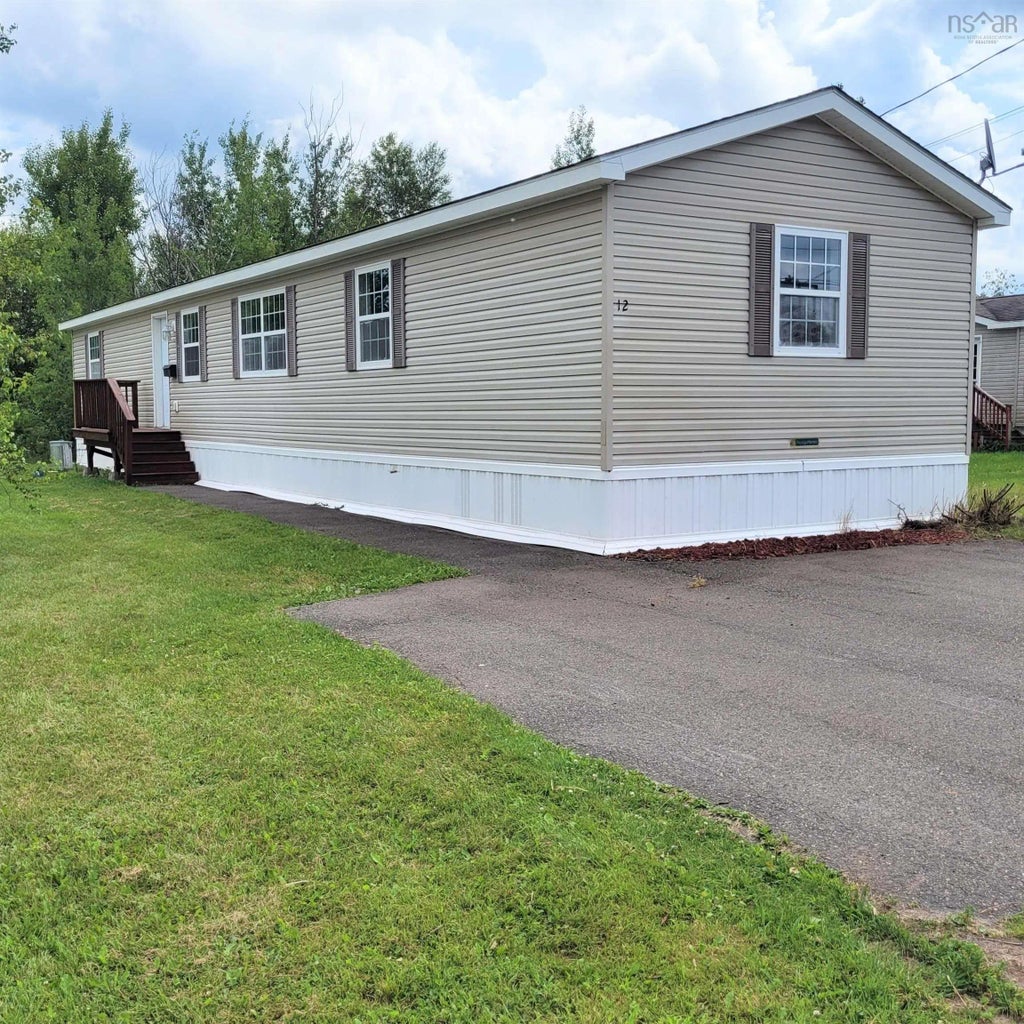 Three bedroom one bathroom mini home sits on on the edge of Amherst close to downtown or to the TCH. This home is situated on a dead end street in a lovely and very quiet community. The home has been well looked after and is in fantastic condition, it has been cleaned and painted throughout. Outside the siding has been washed and the stairs have been newly stained. Inside you will find a bright kitchen with a nice sized eating area, the primary bedroom is on one end, it is a great size with a large closet area. There is a separate laundry area in the hall. The living room is very large and the two other bedrooms, both with closets, sit down the hall at the other end. This home is in move in condition!!