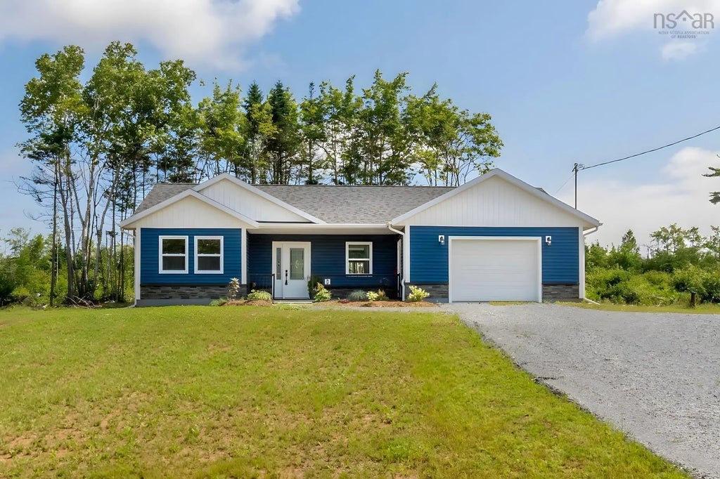 Stunning new construction home ready for new owners! This lovely 3 bed 1.5 bath slab bungalow is situated on just over an acre lot situated nicely from the road with lots of yard space for your family. Close to the popular Aylesford Lake and Lake George and within 15 mins to Berwick amenities and 20 mins to Greenwood. Inside is a nicely open concept design with eat in kitchen, ample storage, IKEA stylish cabinetry with pull outs and great storage, heat pump for heating and air conditioning and patio doors leading onto the slab back patio and private backyard. Three great size bedrooms and modern bathrooms. Attached 1.5 garage, covered front patio and loads of parking space. This stylish home has never been lived in yet and will make for a wonderful place to call home. Mountain living, yet close to all amenities, recreation and nature! Book your showing today!