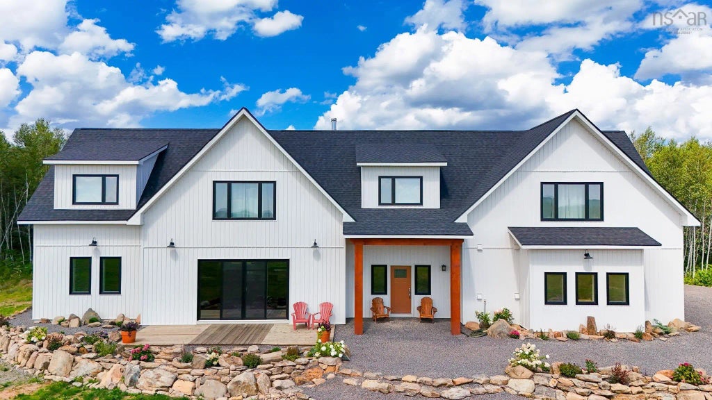 Welcome to 1049 Peck Meadow Road, a serene sanctuary on 137 acres of A2-zoned land, adorned with many blueberry bushes and teeming with wildlife. This 2-level ICF construction home offers both tranquility and unequaled privacy surrounded by nature. The main floor features a spacious open-concept layout that seamlessly connects the kitchen, dining, and living areas—perfect for entertaining. The kitchen boasts an impressive island and an 8-burner dual fuel stove. Practical amenities include a walk-in pantry, office/den, and main floor laundry. Stylish epoxy-coated concrete floors enhance both levels. The double garage, with an extra workshop, caters to creative projects and storage needs. Upstairs, the primary bedroom wing provides a peaceful retreat, complete with space for a lounge, ensuite with a soaker tub, steam shower and walk-in closet. Two additional bedrooms, two 3-piece baths, and a storage room complete the upper level. Additionally, the property features a charming Blueberry Wash House with a full bath and kitchenette, offering a cozy space for family, friends, a kids' zone, and extra storage. Just 15 minutes from Wolfville and Acadia University, this unique home is a rare find. Sellers are motivated—don't miss the chance to make this extraordinary property your own!