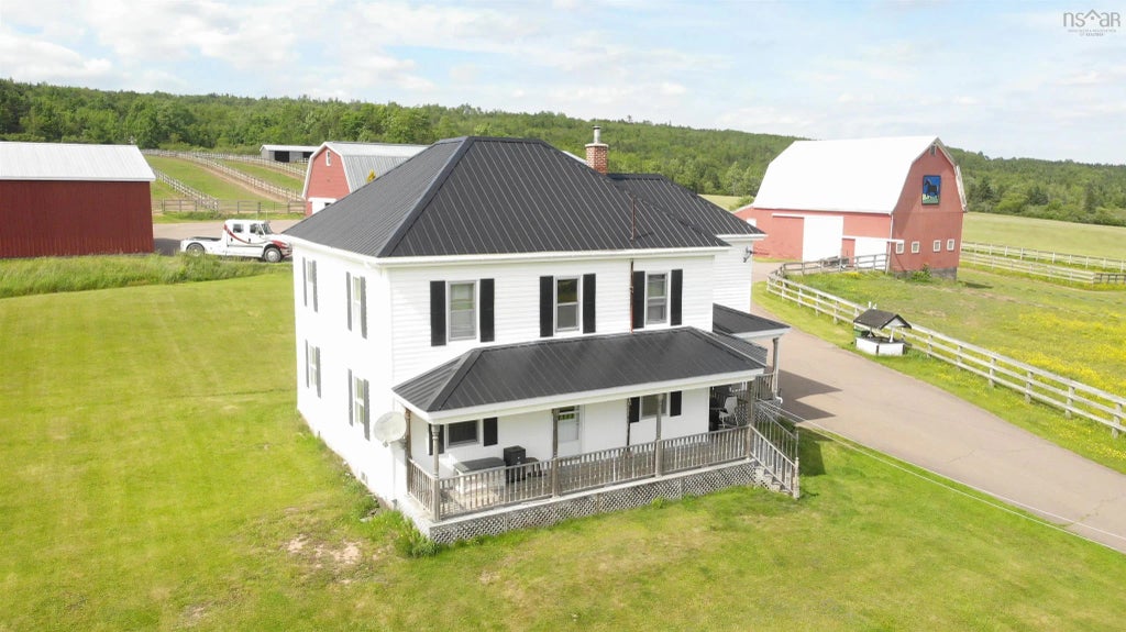Once in a while a property comes along that is well suited for many uses and supremely suited for others. This farm was used as a draft horse training facility and has an impressive amount of features tailored for horse enthusiasts. With 50 cleared acres it offers well drained hay fields and a treed buffer including about 30 wooded acres. If new owners want to build anew there are prime sites and one could subdivide off 4 home lots without changing the complexion of the farm. The current home is 5 bedroom, 2400 sq ft with a steel roof, wood /pellet furnace and lots of character. Currently rented it can use some of your personal touch to really shine. The main horse barn is 4000 sq ft with 11 10' x 14' stalls plus wash bay, tack room, office, 1/2 bath and hay storage with conveyor and elevator above. It has water, power, generator panel and a wide center aisle. It is positioned ideally for easy access to the 13 paddocks with wood and electric fencing (9000 feet). See notes in documents section. The 4000 sq ft clear span equipment shed can hold 2 tractor trailers plus farm machinery. It is 90' deep! The storage barn is about 2400 sq ft with hay storage above. There are also several run-in sheds and a round pen. Located just 15 minutes from Brookfield and HWY 102 in the fertile Stewiacke River valley while still close to all amenities. Be sure to watch the virtual tour and aerial video.