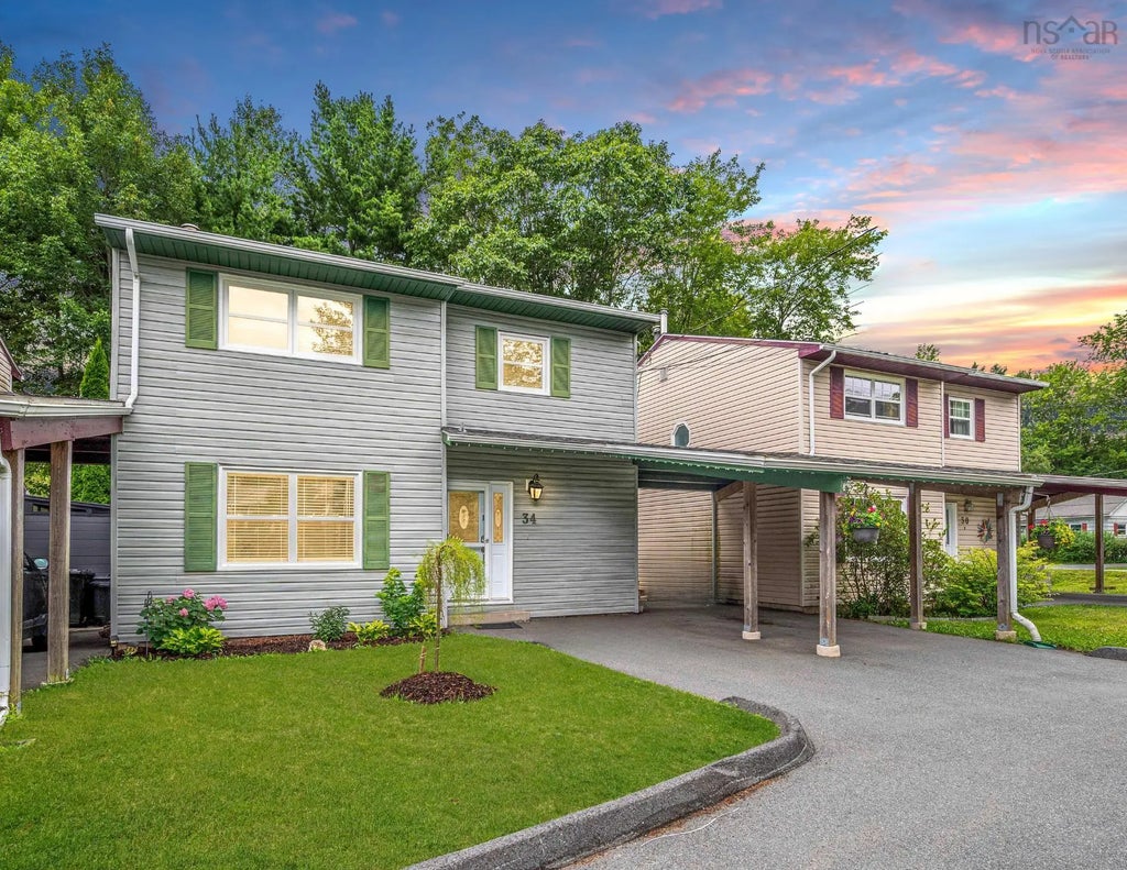 Welcome to 34 Brook Street: live in tranquility in this move-in ready 3 level, 4 bed + den, 3.5 bath condo townhome. 34 Brook Street is an extensively renovated condo townhome located on a quiet, private cul-de-sac in the heart of Bedford - minutes from Shore Drive and close to all your favourite Bedford amenities (Sunny Side Mall, Il Mercato Restaurant, The Chicken Burger, Bedford Library, Bedford Yacht Club, Cascades Spa, Bedford Lions Outdoor Pool, Dewolfe Park). Walk down Shore Drive and enjoy the fresh ocean breeze and views of the Bedford Basin. Whether you are looking for a family home or an investment property, this residence offers so much potential and is completely renovated. This condo corp has 8 townhomes total each with a carport. Unit 34 offers parking for up to 3 cars! You will love the fully ducted cooling and heating system. The low condo fees of $400/ month cover: mowing the lawn, road snow clearing and exterior maintenance. Favourite features include: new kitchen countertops, new flooring throughout, babbling brook & walking path nearby, the wood burning fireplace (the centrepiece of the living room), brand new back deck and side deck, renovated bathrooms, lower level wet bar kitchenette perfect for guests or entertaining. The main level features: the kitchen, living room and dining room, with a 2 pc bath, office/den and laundry room. Second floor: the private primary bedroom (trees fill the windows) includes 3 closet spaces, an updated ensuite bath, along with 2 other bedrooms and a 4 pc main bathroom. The lower level offers the 4th bedroom, a new full bathroom and large rec room with a kitchenette and bar seating. Experience having your exterior maintenance covered and also all the perks of a fully detached home. This is an attractive option for downsizers, investors and those looking for a hassle-free living experience. Properties are not available often for this price point and proximity to Shore Drive. New siding coming on each unit AUG.