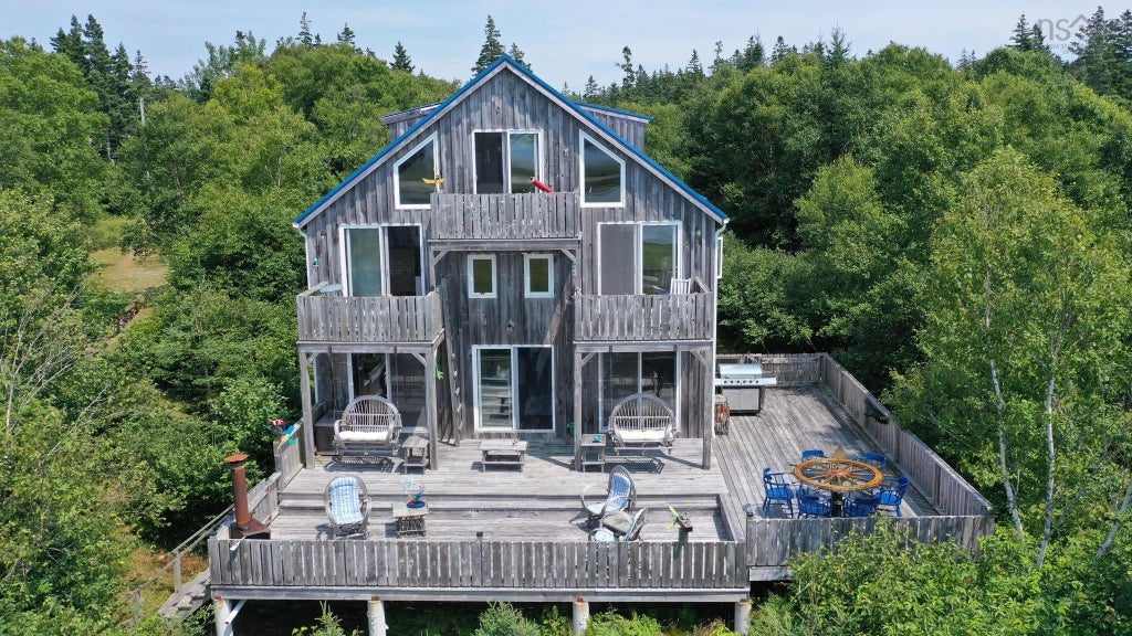 Discover the perfect blend of rustic charm and serene waterfront living with this exceptional barn-style home. Nestled on a picturesque harbor front, this one-of-a-kind property offers unparalleled views and a tranquil escape from the everyday hustle. The dwelling is a reconstructed barn with its 200 year old beams. This distinctive residence features 3 bedrooms and 2.5 bathrooms, thoughtfully designed to capture the essence of barn-style architecture while providing modern comforts. The open-concept layout is highlighted by soaring vaulted ceilings, exposed wooden beams, and an inviting open concept main floor that serves as the heart of the living space that seamlessly blends with the outdoors through expansive windows and sliding doors that lead to a large deck overlooking the harbor. The master suite, situated on the 3rd floor, is a private retreat with stunning water views, a cozy reading nook, and a quaint en-suite bathroom with a toilet and sink. The claw foot antique copper tub sits in the main space to capture the views. Found on the second floor are the additional bedrooms that offer comfort and charm, each with unique design elements that enhance the rustic feel of the home. The second floor also offers separate sitting areas with water views and a cozy area to watch tv. Both floors have balconies. Step outside to experience the true beauty of this property. The expansive deck provides a perfect vantage point to enjoy morning sunrises or evening sunsets over the harbor. Easy water access makes this property great for boating and other water activities. Located just a minute's drive from the seaside town of Lockeport with many white sand beaches, this home offers both seclusion and accessibility. Embrace a lifestyle of serenity and charm with this rare harbor front gem. Schedule a private viewing today and make this extraordinary rustic barn-style home your new sanctuary by the water!