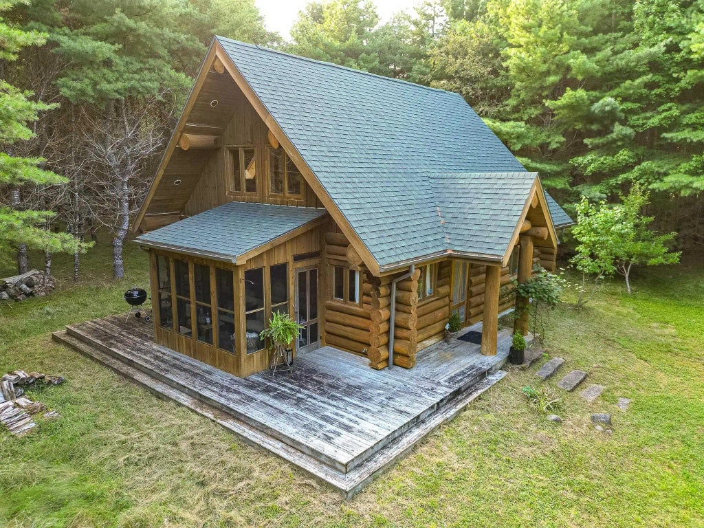 Remote hunting lodge or secluded cabin, this 1100 square foot, custom built, log-house may be the answer! This distinctive property has the ambiance of nature preserve and quiet solitude and yet it is a mere, twenty minute drive into Shelburne town. Equipped with modern amenities including under-ground electrical, security system, telephone, FIBRE-OP and deep dug well, the building and the 3.14 acre property on which it sits is calling. Easily converted, it could be an excellent, off-grid setup too. Situated on a site, which was once an apple orchard, the cabin is surrounded by Acadian, old- growth, forest and century-old, dry stone walls. Adjacent and available as a separate real estate listing, is a one hundred and forty-one acre piece of sought-after, forested land. Hemlock Creek runs here. It is mostly dry with summer heat but in spring, it runs to a tributary of the Clyde River. Fifty-four thousand acres of crown land stretch out to the north/northwest. The cabin property is accessed by a lane. Hardwood trees canopy there and walled fieldstones mark the edges. Although seemingly private, this lane is public and therefore is serviced for snow-clearing and garbage pick-up by the municipality. Postal service is available in Shelburne town. A private, gravel drive fronts the cabin, then a series of locally-quarried, granite steps lead to a covered porch, open deck and small, screened room. Entering the open-concept, main room of the cabin, one is struck by a fieldstone fireplace, its custom, Jotul, wood-burning insert and rough, hewn mantle piece. Wooden, casement windows and skylights provide ample light. The living, dining and kitchen area has a cathedral ceiling supported by an interesting network of large, perfectly notched logs. The cabinetry is custom pine with granite counter top.The bathroom, utility room and main bedroom are on the main floor. A large loft reached by a log stairway is bright and airy; easily room for a second bedroom/office setup.