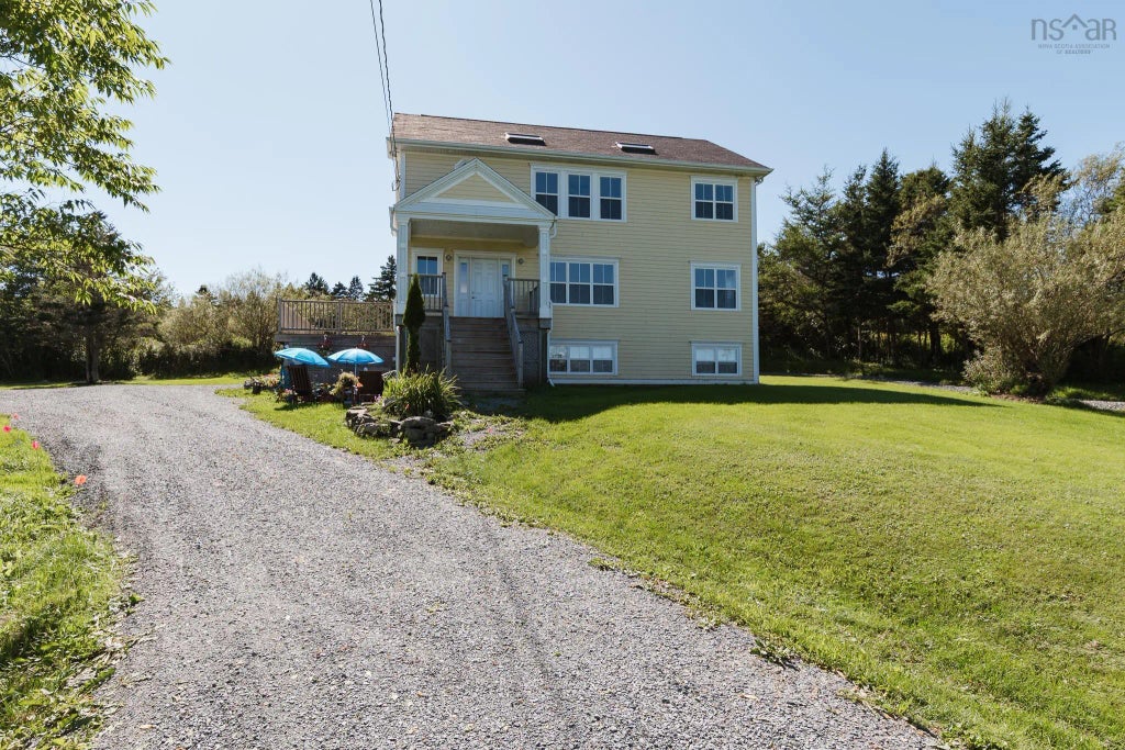 Nestled on a spacious and historic 2.1-acre lot in the charming community of Grand Desert, this 16-year-old two-story home offering serene views of the inlet.The main floor features a large eat-in kitchen with a movable island and granite countertops, seamlessly connected to a generous family room with stunning water views. An adjoining office, perfect for conversion into a dining room, adds flexibility to the layout. A full bathroom with laundry completes this level. Upstairs, you'll discover two oversized secondary bedrooms, one of which is prepped for an additional kitchen. The primary suite is bright and expansive, again offering views of the inlet, a luxurious 5-piece bathroom, and a walk-in closet. The walk-out basement serves as a self-contained unit, featuring a spacious bedroom, a cozy den, a large living area, a fully equipped kitchen, and a 4-piece bathroom with laundry. However, the staircase to the main floor remains intact and can easily be reconnected. There is an electric boiler with infloor heat on all 3 levels, this home has a time of use meter with an EnerGuide rating of 78, There are also ductless heat pumps to ensure efficient heating and cooling throughout the year. The property boasts hardwood floors, custom-stained interior doors with Boston headers, enhancing the home's charm. The expansive backyard offers a spacious patio deck and is perfect for entertaining or just taking advantage of the afternoon sun.