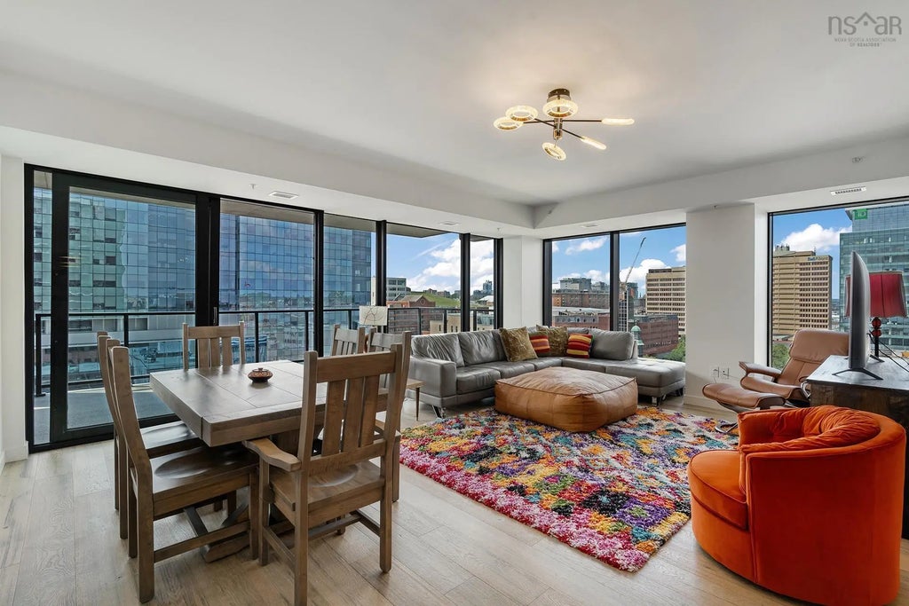 The Roy is Halifax's premiere luxury Condominium residence. This is not your normal condo nor is it your normal condominium building. With the impressive 10,000 sq. ft. Roy Club with pool, sauna, steam room, gym and yoga studio to a full kitchen and leisure room with an outstanding deck with a view. 24 hour concierge and this unit comes with a deeded parking spot. the Condo itself is like new and barely lived in. a corner unit with just under 1400 sq. ft and a 323 sq. ft. balcony it is fabulous. a rare opportunity to own one of the premiere corner units on the 14th floor. One of the most functional layouts you have two full bedrooms and baths and a very large den area you can use as office or media room. High end appliances are all included and natural light abounds. this is a truly outstanding condo and building. you can go to theroy.com and check out some of the features and view our video tour on line. Condo fees include the condo and the parking spot