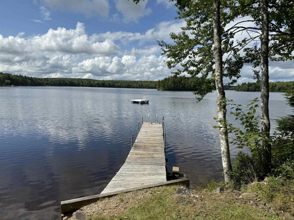 The pictures say it all. Slide into that Adirondack and start soaking in the sunsets. 2+ acre parcel with 232 feet on Lake Lewis located on New Russell Rd. so no road fees or covenants. Lake Lewis is a favorite for fishing, swimming, motor boats and kayaking. A registered 2001 Glendale RV (36x12 with bumpouts) sits on the lot now with large full length deck, awning and is hooked up to dug well and septic. Bunkie (16x12 less 6x4 deck) with half bath is nearby for overflow of guests. Drain in place for potential shower or washer hookup. Wharf and dock system included. Areas around yard for additional RV spots. Located within 10 minutes to the amenities of New Ross, 1/2 to Windsor, Kentville, Chester and 1 hr to Halifax. Great entry opportunity to build your life at the lake.