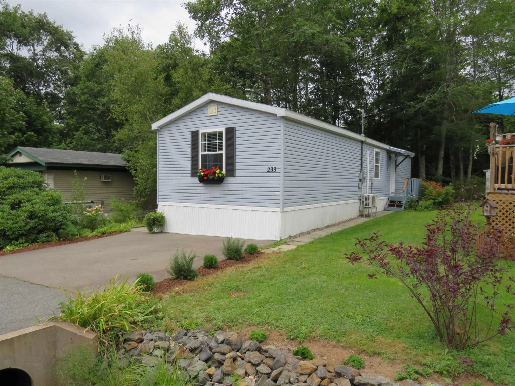 Absolute move-in ready! This 2 BR 1 Bath mini home, located in Bridgewater’s desirable Eisenhauer Place, has great curb appeal and is one of the nicest examples you will find, checking all the boxes inside and out. Low-maintenance exterior, landscaped yard with mature trees, double paved driveway, small deck at the main entry plus a large backyard patio area and a generous shed for extra storage. The interior renovation presents a fresh, contemporary look with modern fixtures, interior doors, trim and cabinetry throughout the kitchen, bathroom and laundry area. Nice use of ceramic and laminate flooring in the high-traffic areas. A mini-split heat pump helps heating in winter while also providing cooling during warmer months. Washer, dryer and stainless steel kitchen appliance are all included, as are the window treatments.